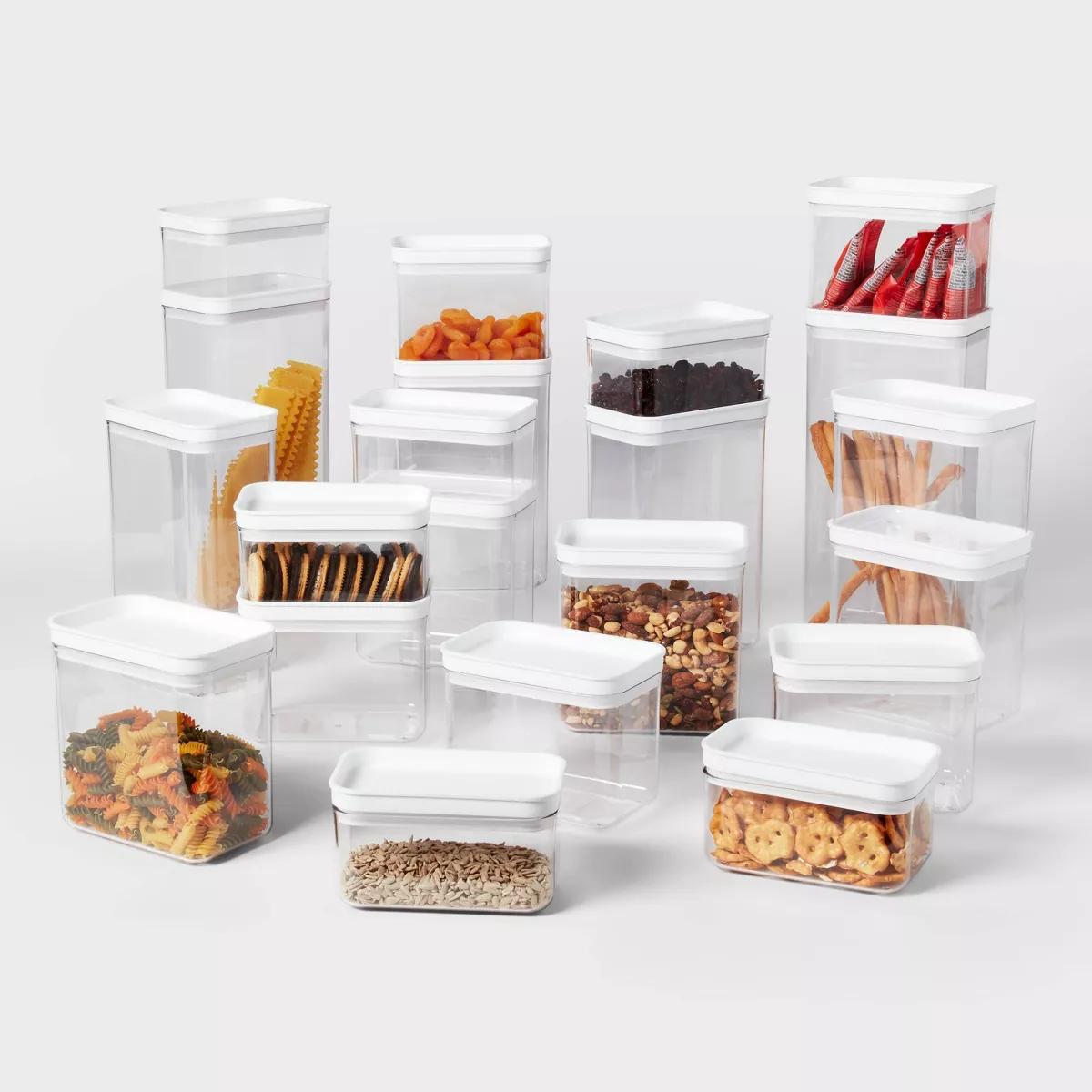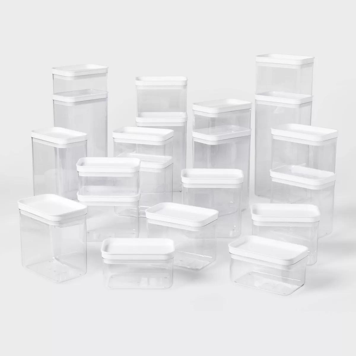 Bring ease to your everyday routine while maintaining an organized kitchen with the 21-Piece Food Storage Canister Set from Brightroom™. This food storage canister pack includes assorted size canisters with a clear design to easily see the contents, and accompanying lids to keep the contents nicely stored. Made with plastic, the pieces make a practical addition to your kitchen, and they should be hand washed for easy cleanup.