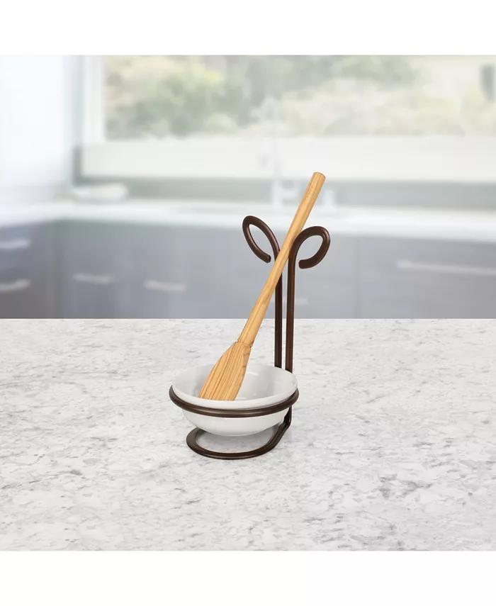 Inspired by the beautiful leaves of fall, Spectrum's leaf spoon rest keeps messy cooking utensils off of your countertop and stove. Made of sturdy steel, this item will instantly add a sophisticated touch to your kitchen.