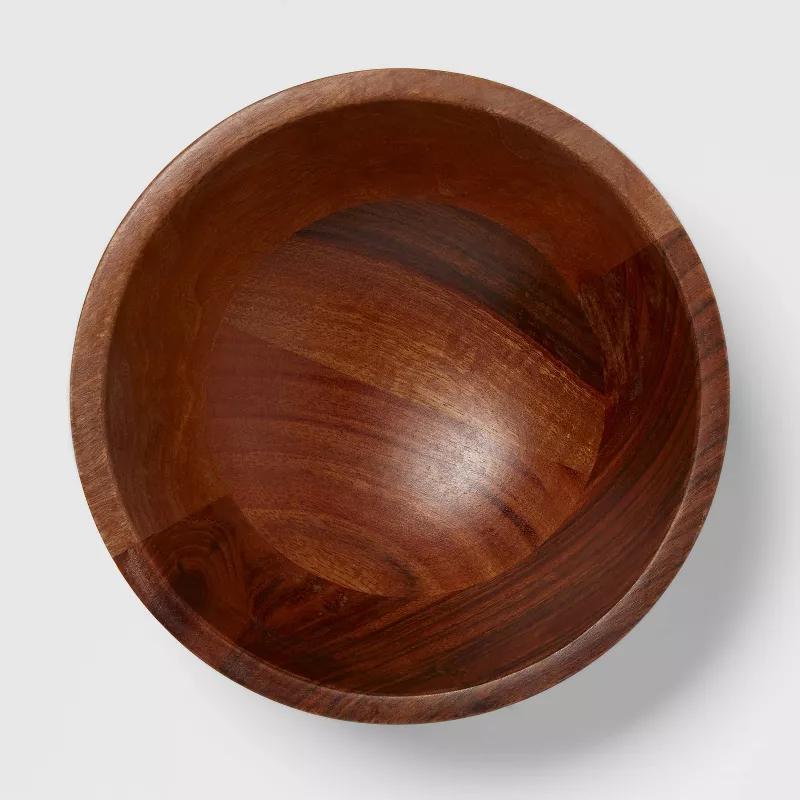 Lend an earthy touch to your dining table with this Wood Small Serving Bowl from Threshold™. This round serving bowl makes a convenient addition to your serveware collection. It features a brown wood grain finish to bring natural appeal to your dining table. This multipurpose bowl is ideal for serving fresh fruits, leafy salads and more. Plus, it can be spot cleaned for easy care.