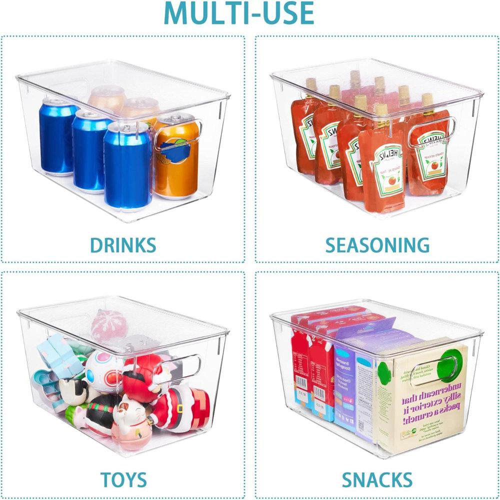 Sturdy Material: Made of premium BPA free durable polyethylene material,A storage bin can bear 8kg,the large storage bins are strong enough to support the weight of full bottles and cans,and other items.You can stack other items on the storage bins at will, which plan storage space reasonably.