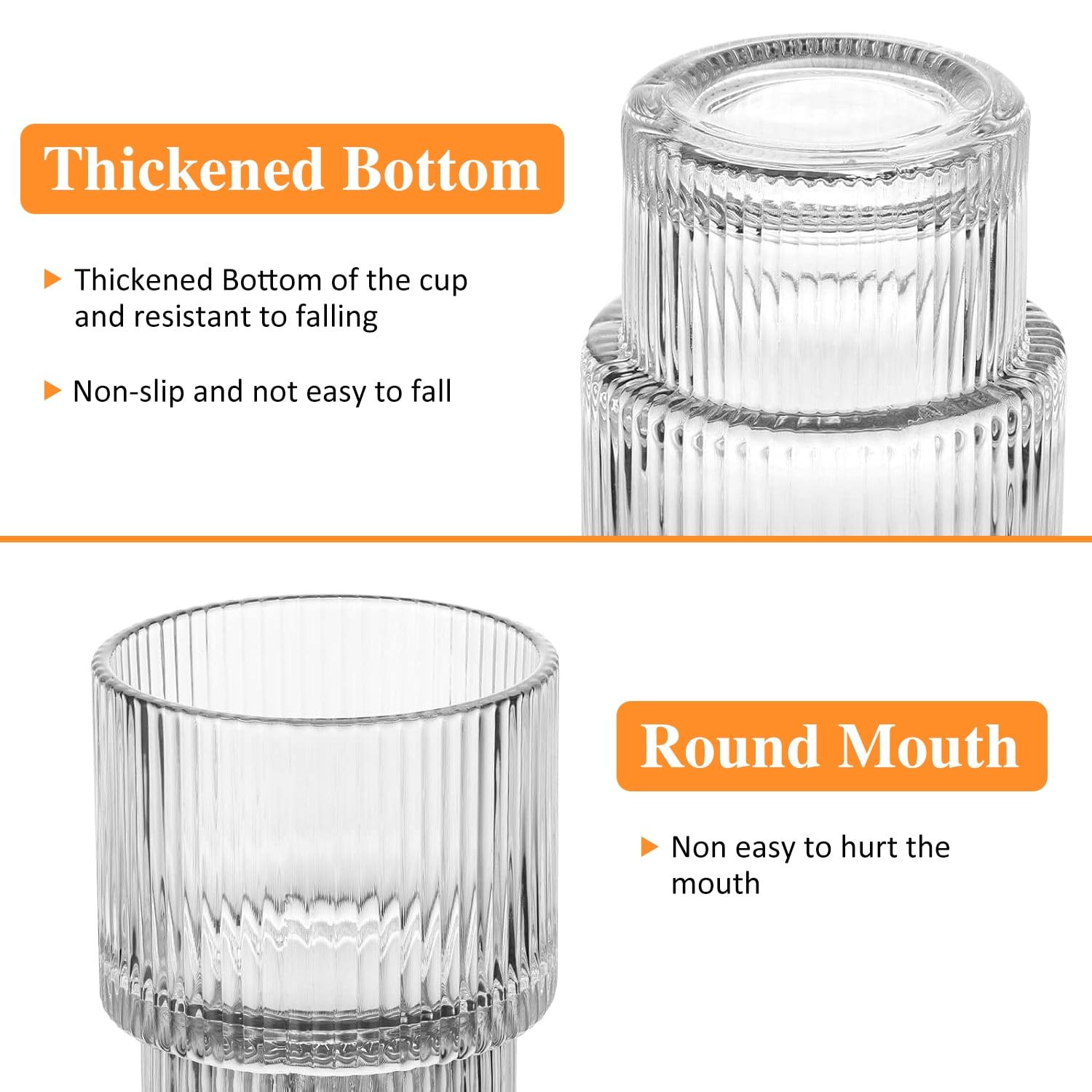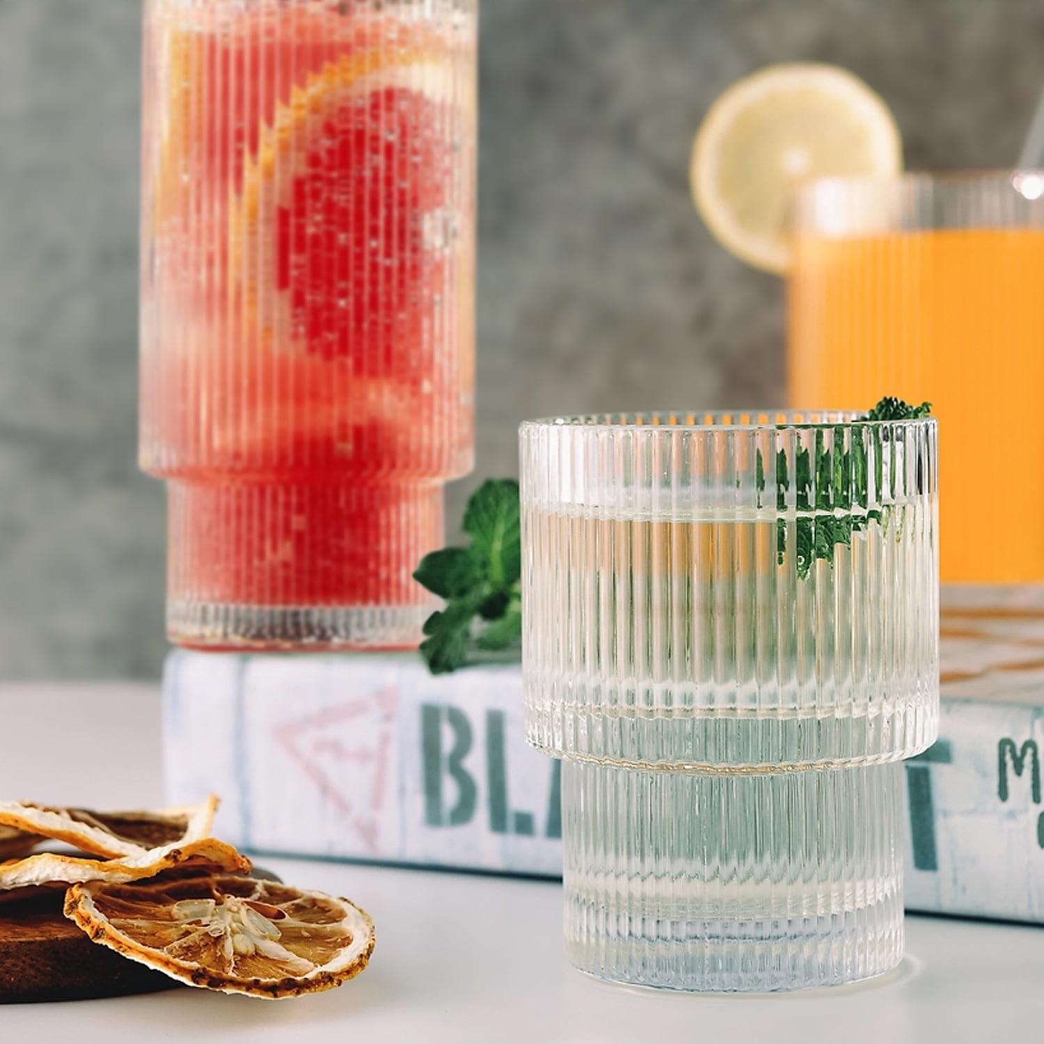 TINANA Ribbed Glassware Set of 8,Glass Cups 12 oz and 7 oz