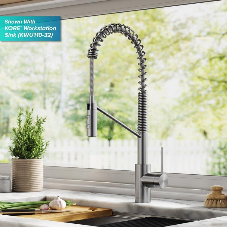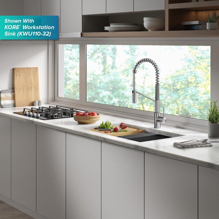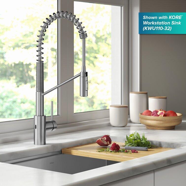 KRAUS Oletto Touchless Sensor Commercial Pull-Down Single Handle Kitchen Faucet with QuickDock Top Mount Assembly