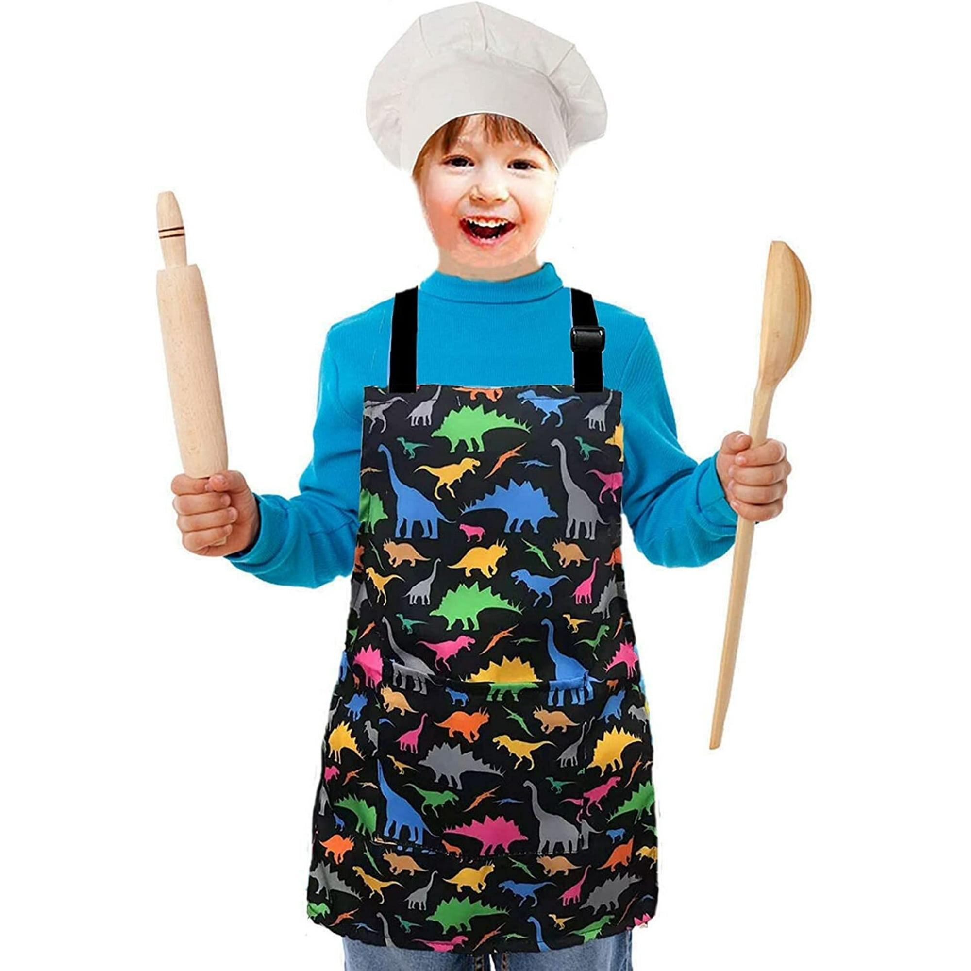 Kids Boys Dinosaur Apron with Pocket, Girls Unicorn Aprons for Cooking, Painting, Kitchen Apron for Children 6-12Years