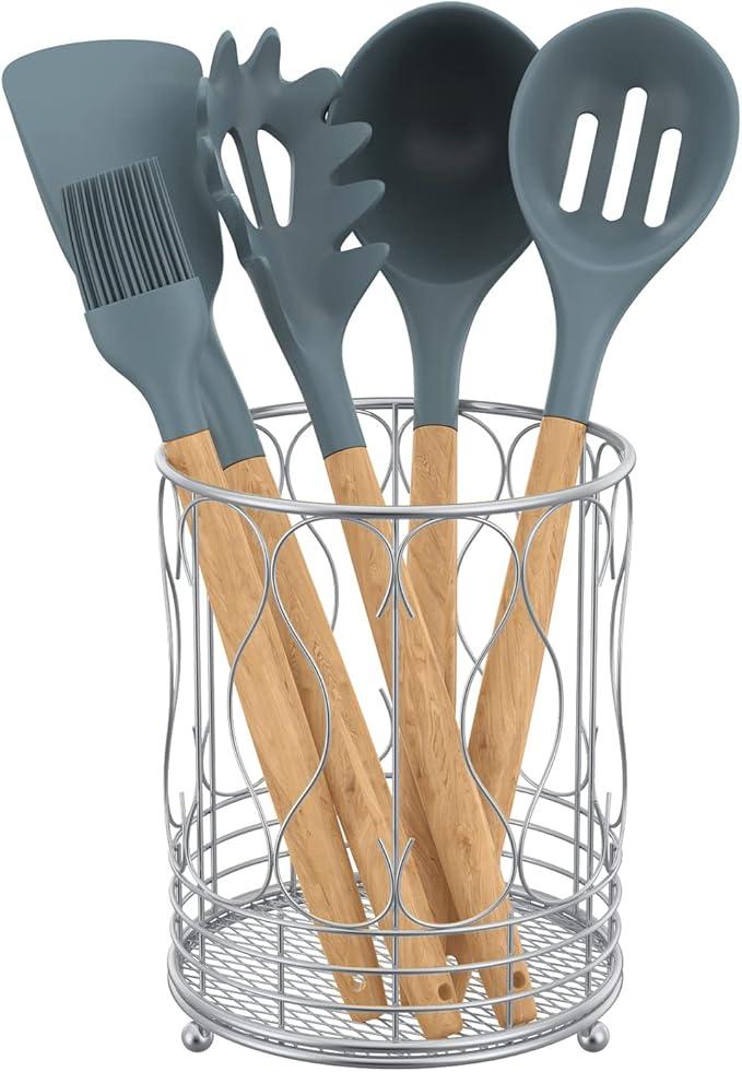 Large Round Kitchen Utensil Holder for Countertop, 7" H x 5.5" W