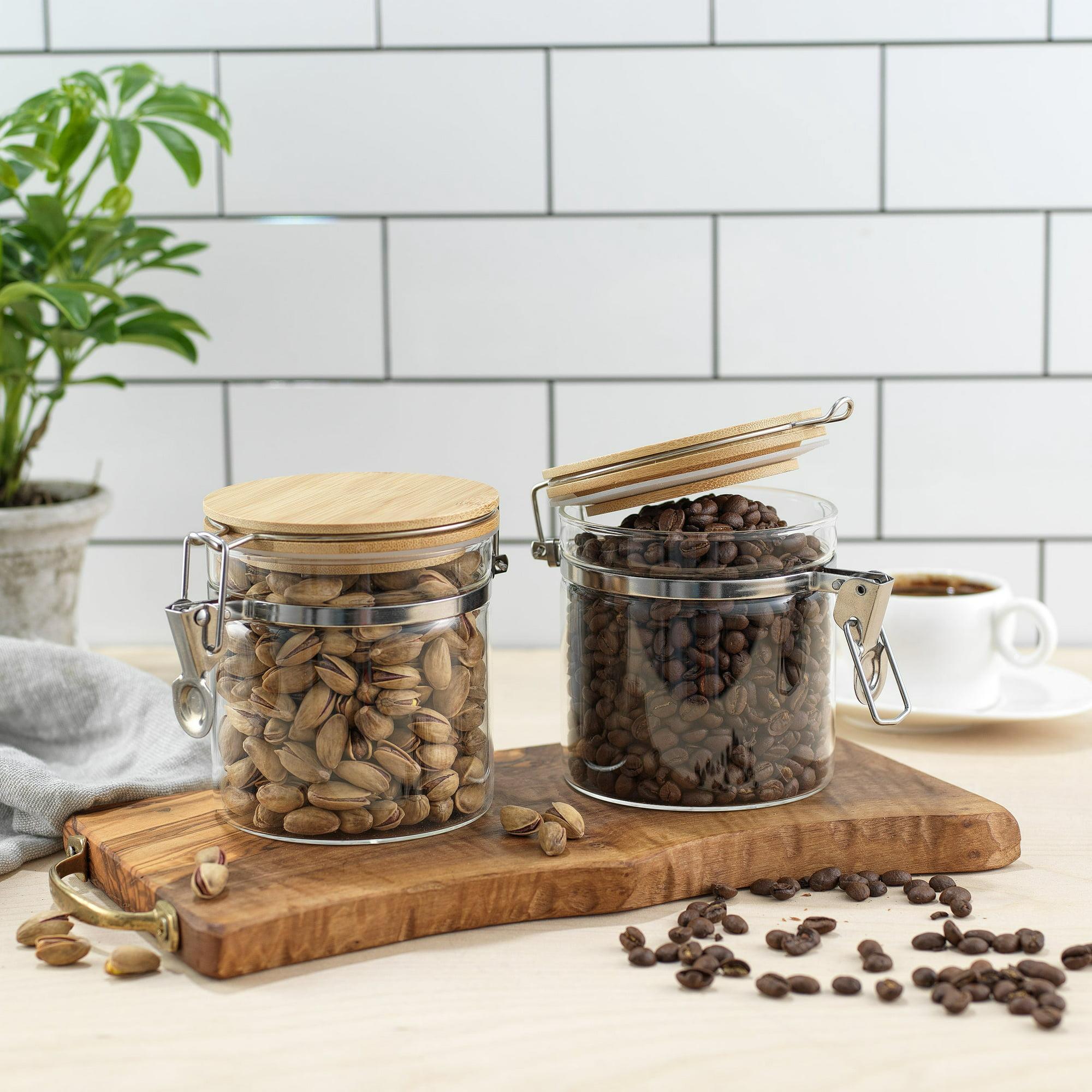 These modern glass food containers with bamboo lids add understated style to your kitchen. They're perfect as a nuts container, herb container or small candy jar for display or kitchen storage. These glass jars with wood lids are both beautiful and functional in your pantry.