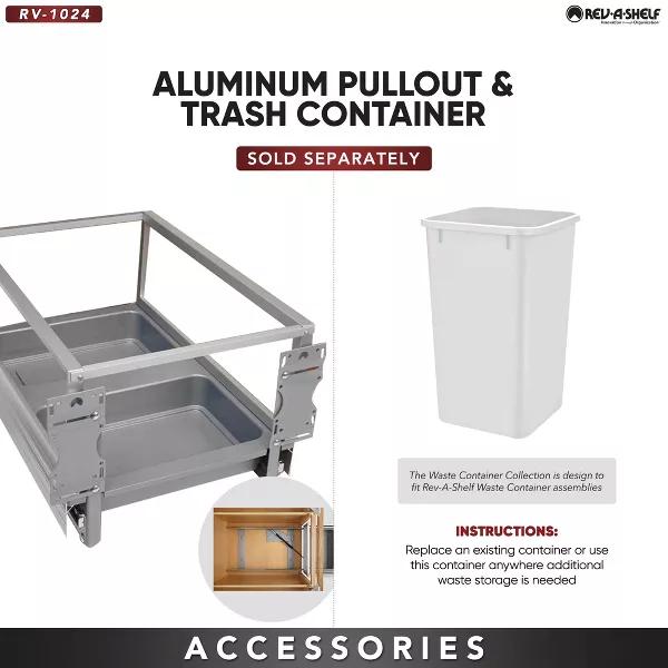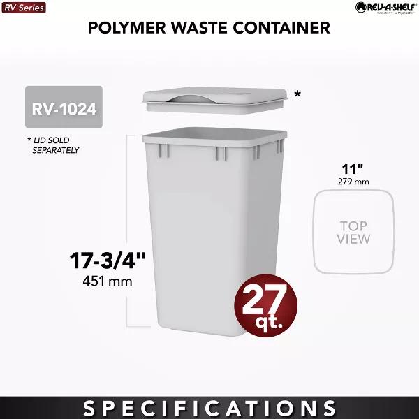 The 27-Quart Polymer Replaceable Trash Bins from Rev-A-Shelf are the perfect solution for your kitchen waste needs while being compatible with Rev-A-Shelf Pullouts. Conveniently store your trash bins tucked away in your drawers or cupboards so you can maintain your kitchen's lovely appearance, or keep the waste bins in other various locations around your apartment, home, or office to minimize waste being left out.