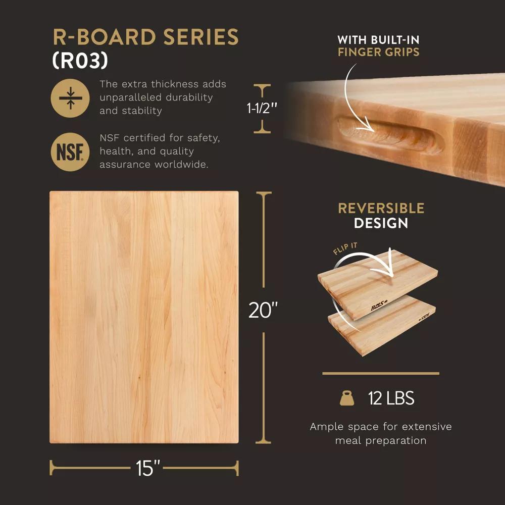 John Boos Wide 1.5 Inch Thick Reversible Cutting Board Block with Two Sided Hand Grips , 18 x 12 x 1.5 Inches