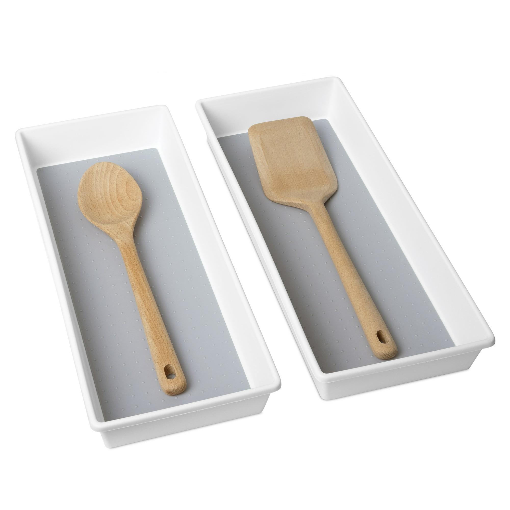 The Smart Design drawer organizer trays were made for organizing your kitchen drawers and office drawers. Great for organizing flatware, silverware, cooking utensils, office supplies and much more. Package Includes (2) Plastic Drawer Organizer is ideal for storage and organization for miscellaneous items.