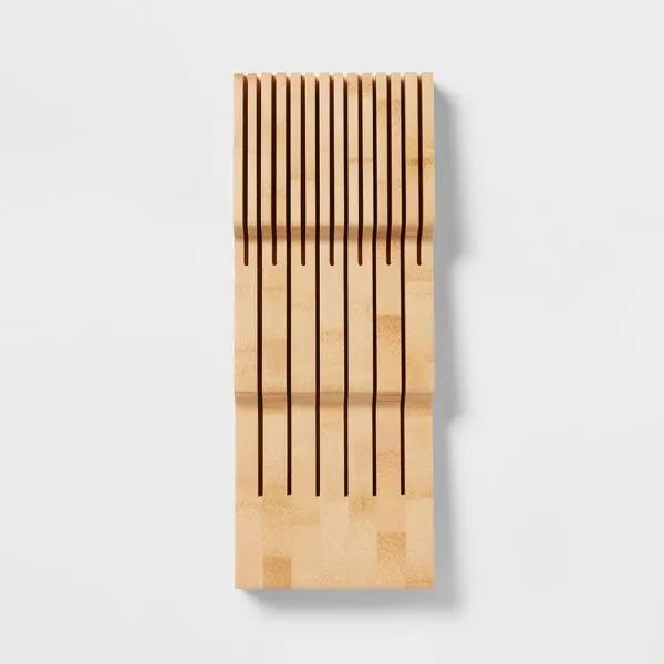Keep your knives organized with this Bamboo In-Drawer Knife Organizer from Brightroom™. This bamboo knife organizer features 13 slots to safely store different knives while keeping their sharp edges hidden to prevent accidental nicks.