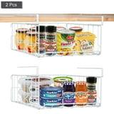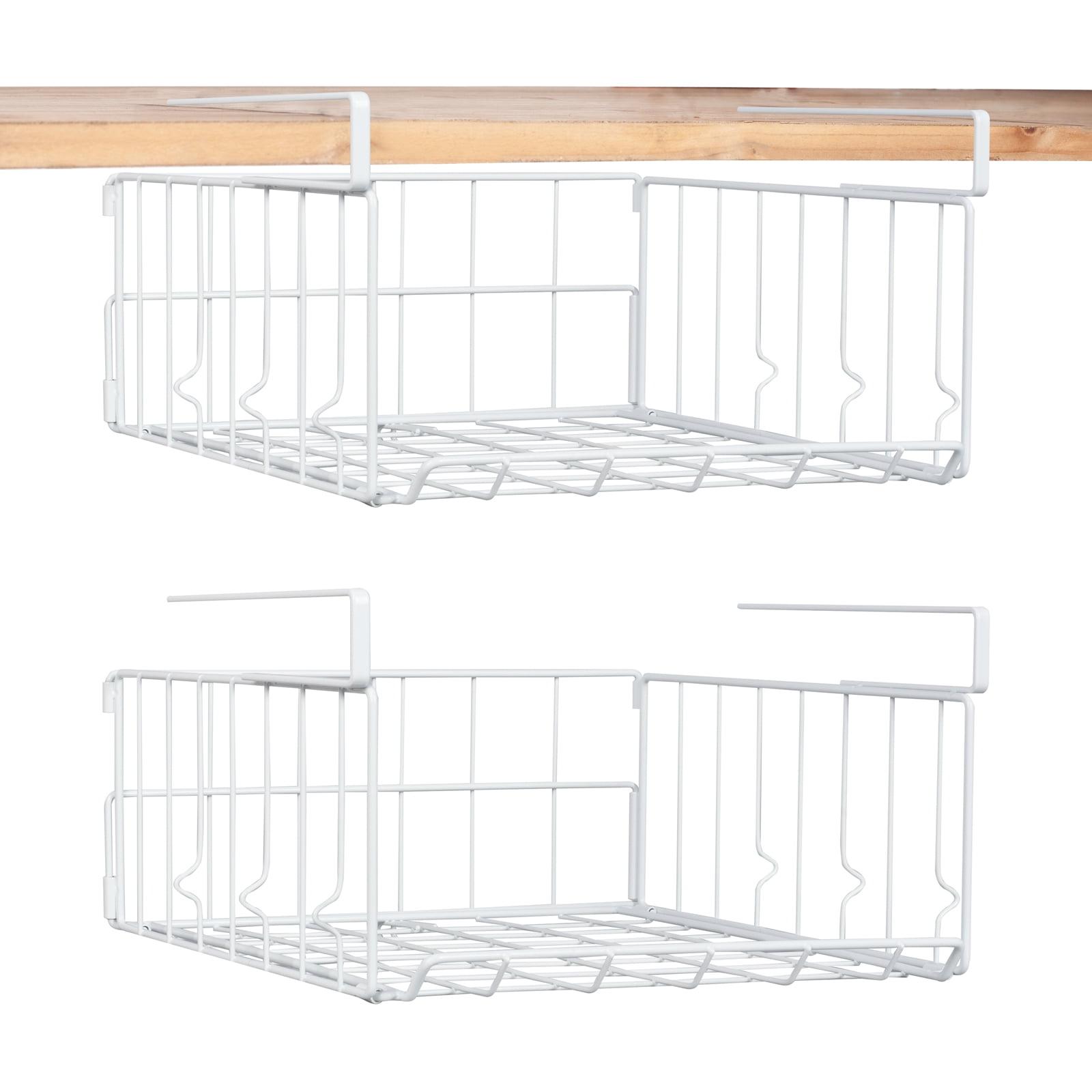 YOYTOO 2 Pack Under Shelf Basket, Cabinet Storage Hanging Baskets Organizer Wire Rack Shelves for Kitchen Pantry, White