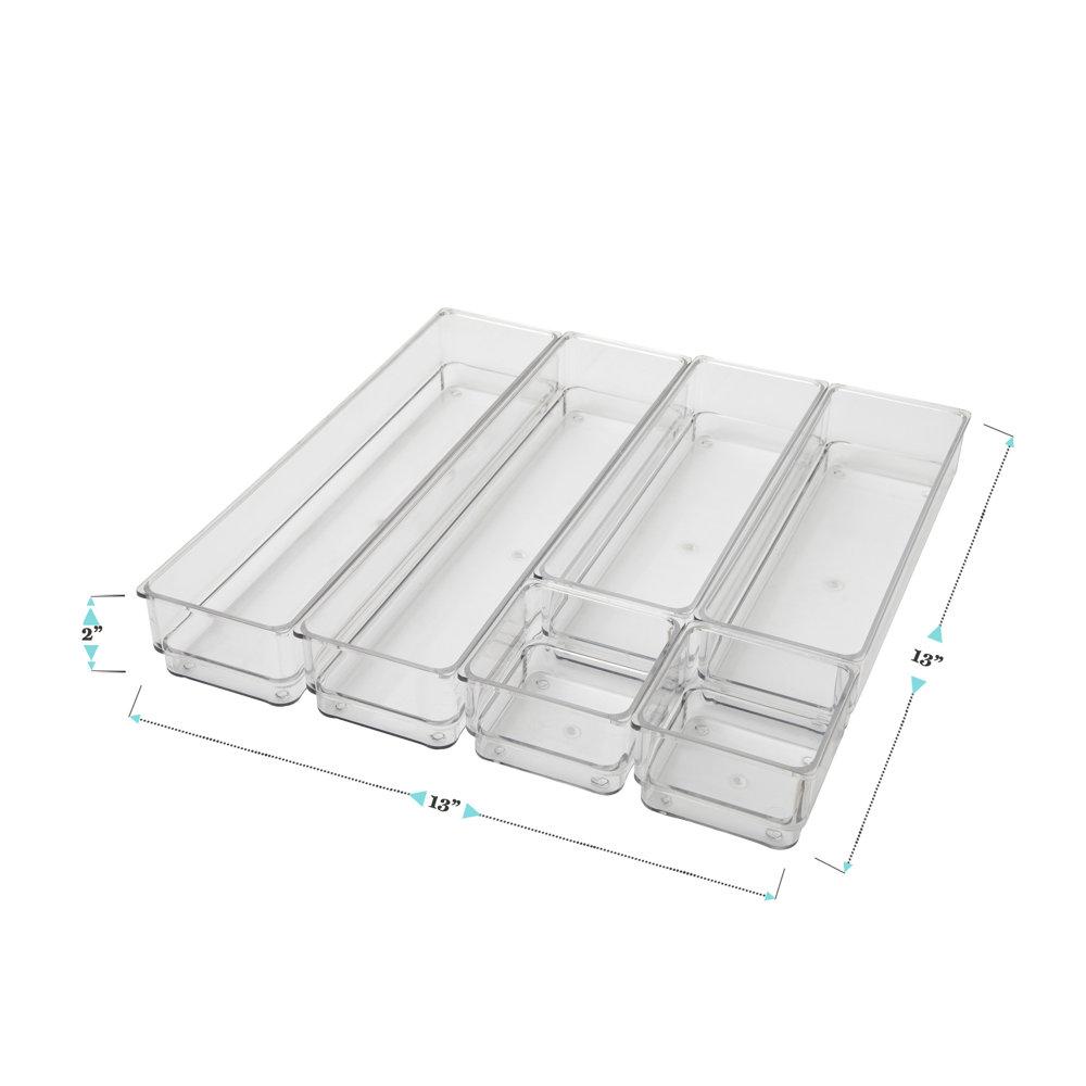 Versatile design ideal for in-drawer or desktop use.Recessed bottoms allow each piece to stack and slide.Non-slip feet ensure each unit stays in place
