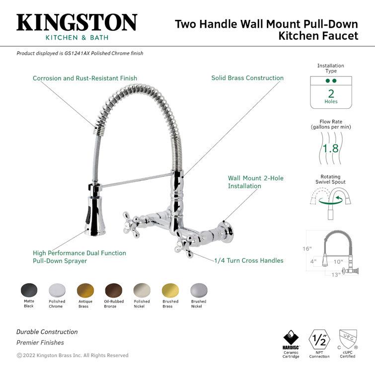 Brushed Nickel Gourmetier Heritage Pull Down Bridge Faucet with Accessories (Part number: GS1248AX)