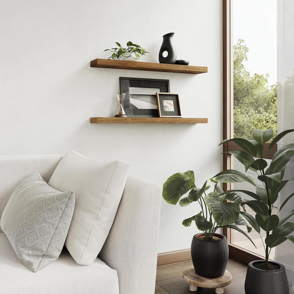 Rustic Wooden Floating Wall Shelves (Set of 2)