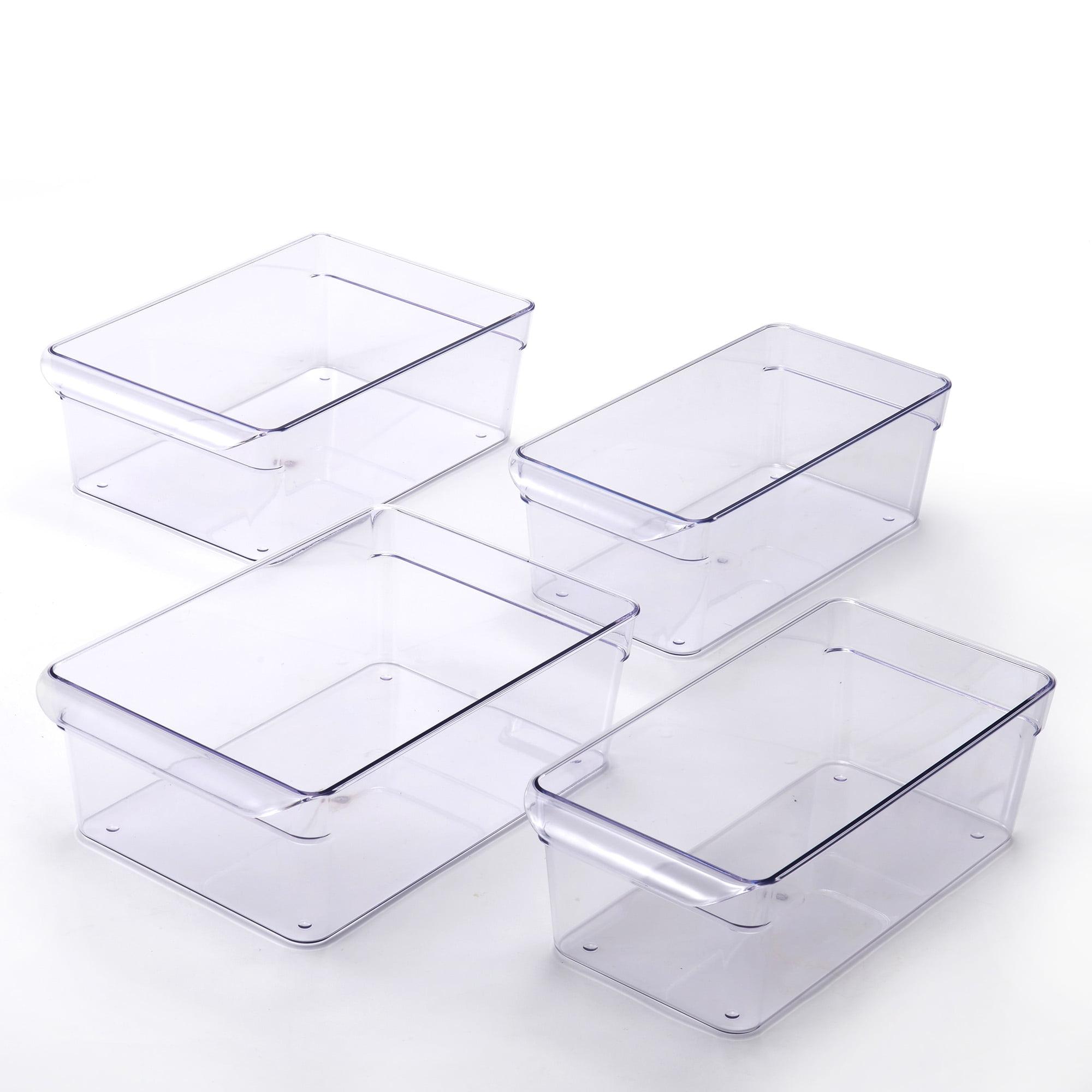 Mainstays Clear Plastic Fridge Organization Bin 4-Pack Set, Various Sizes