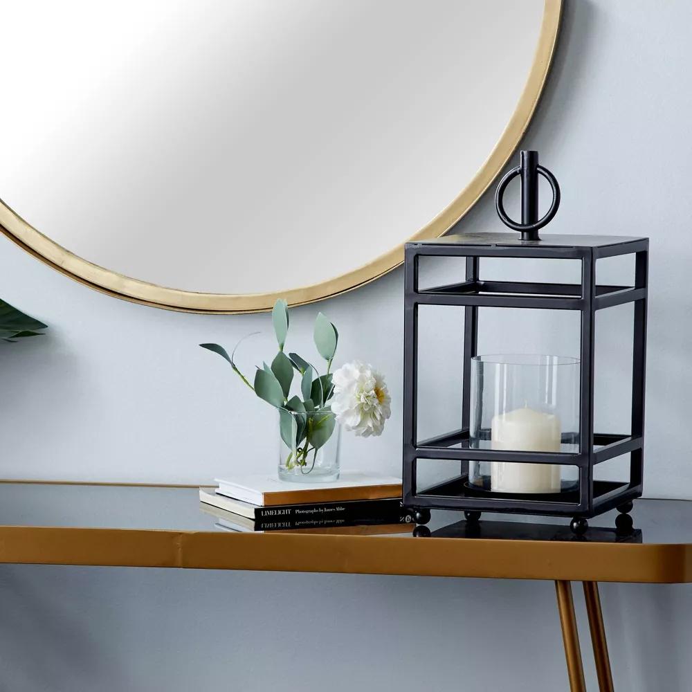 Infuse your space in the romantic candlelight glow that emits from this matte black candle lantern for home. Delight your guests and make any occasion extra special by adding a lighted or flameless candle to this lantern. Made with a sturdy base, it is perfect for creating an elegant atmosphere at your table top or mantel.