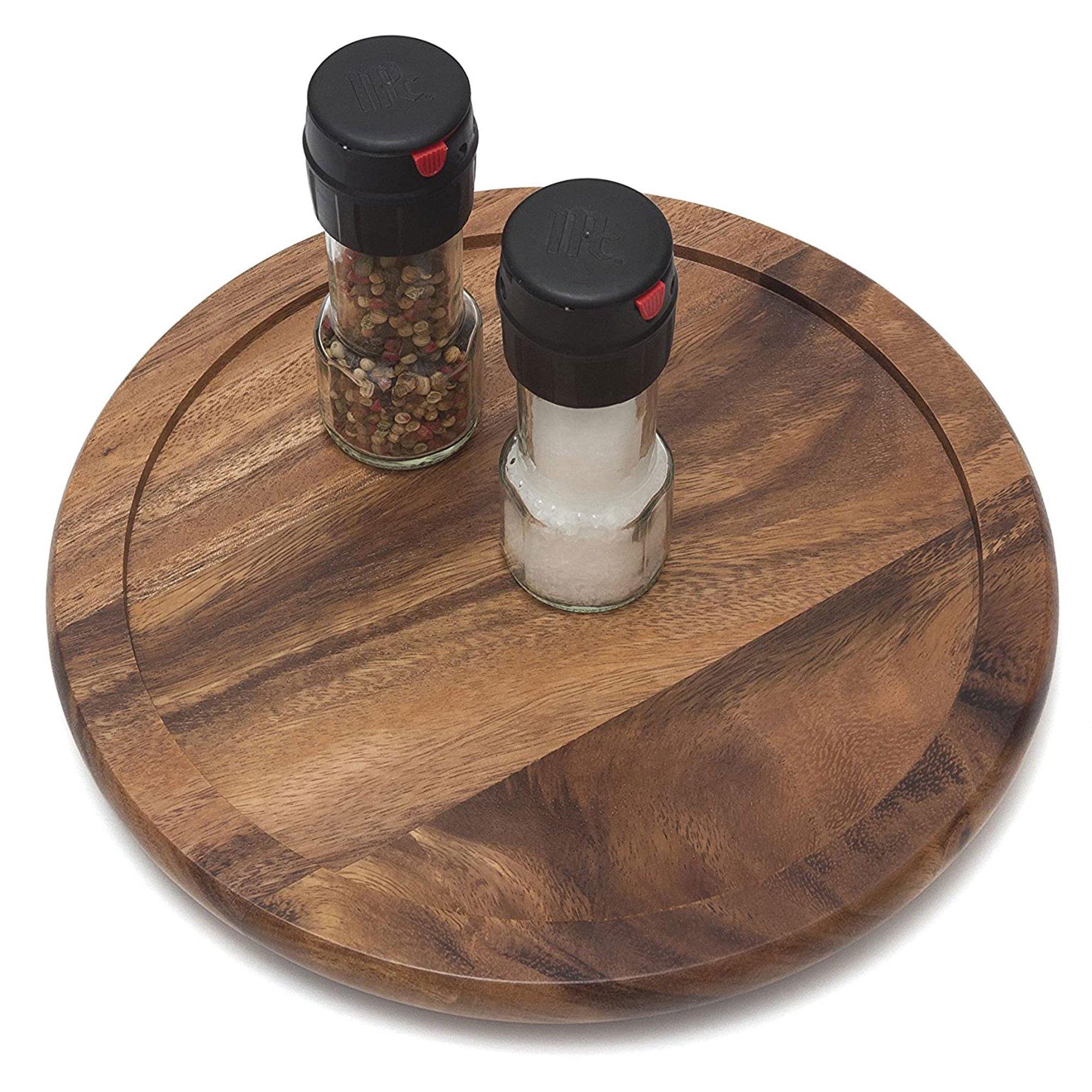 From serving up tapas to setting out a pitcher of freshly squeezed lemonade, the Lipper International 10-Inch Environmentally Friendly Acacia Kitchen Turntable brings convenience and functionality to tables, counters, pantries, and beyond. The high variation in the grain and knot pattern of acacia allows you to pair each piece with both light and dark colors inside any room. This acacia turntable is the ideal choice for a centerpiece on your table or a focal point on your counter-top. Paired with a smooth gliding turntable for easy turning, this beautiful wooden acacia turntable makes sharing a meal or drinks both easy and elegant. The specially designed outer lip also prevents any items from slipping off, so don't be afraid to pass the salt or sneak that second danish.