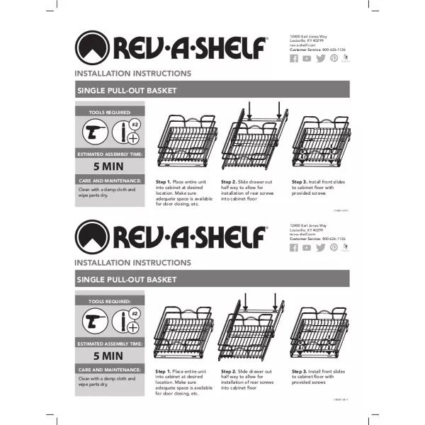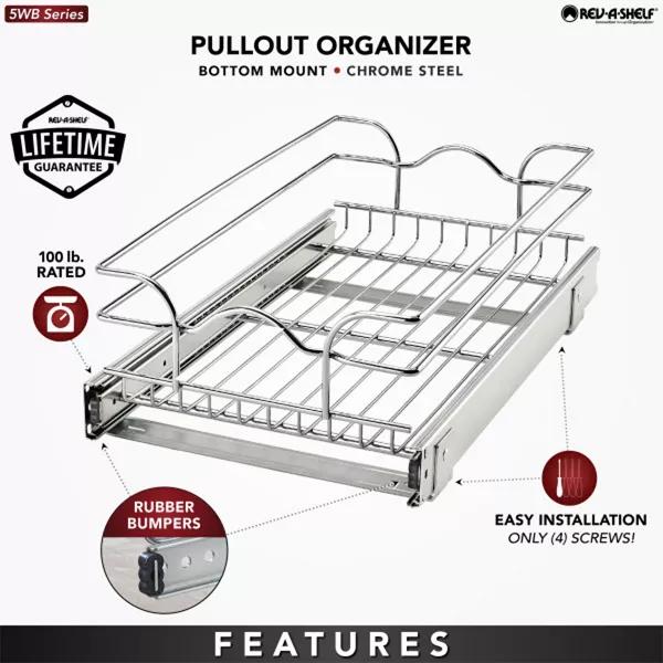 Rev-A-Shelf 5WB1-0918 Single Wire Basket Pull Out Shelf Storage Organizer for Kitchen Base Cabinets, Silve