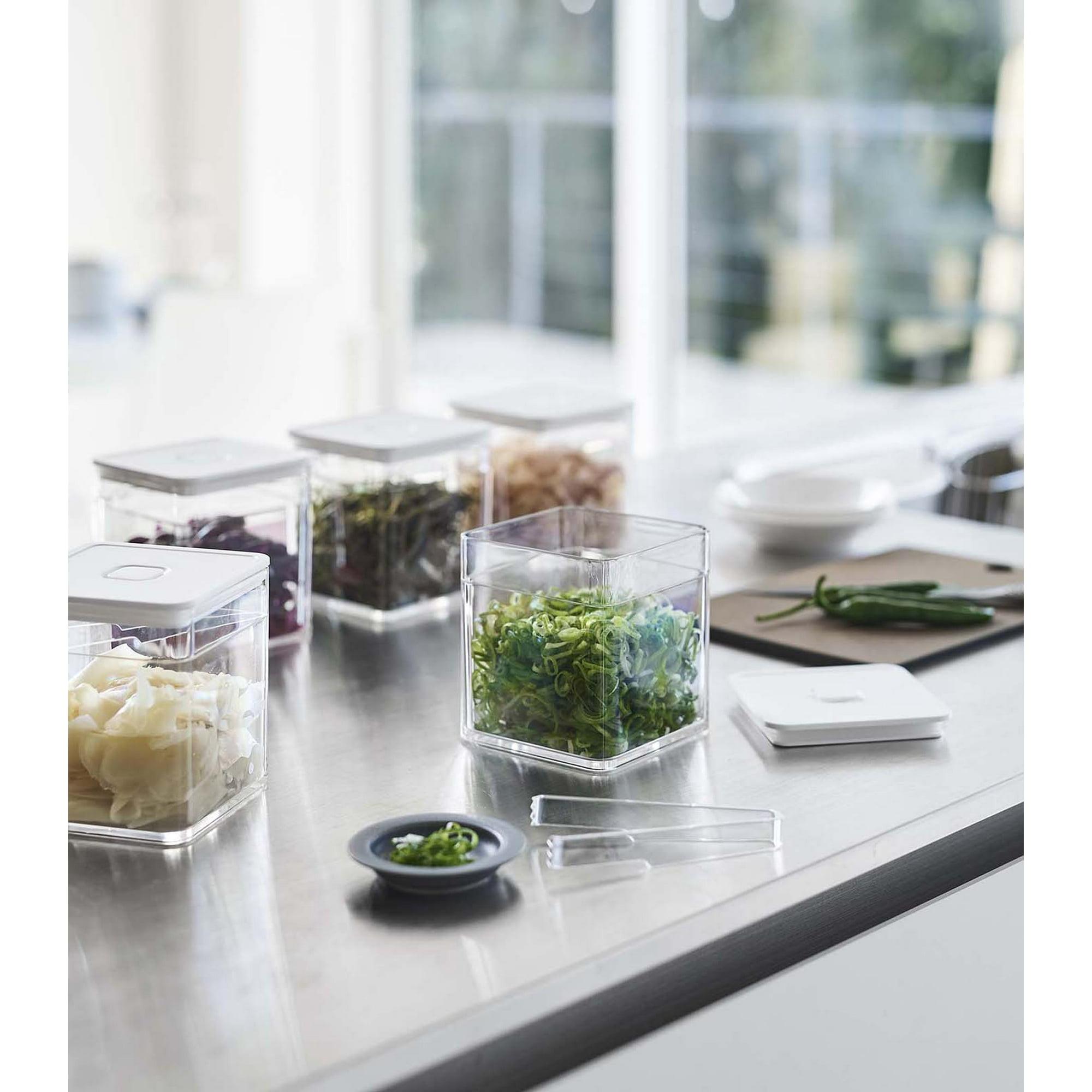 Yamazaki Home Vacuum-Sealing Food Container - Two Styles, White, Polypropylene, Tongs, 500ml, Airtight, Dishwasher Safe, Lid, No Assembly