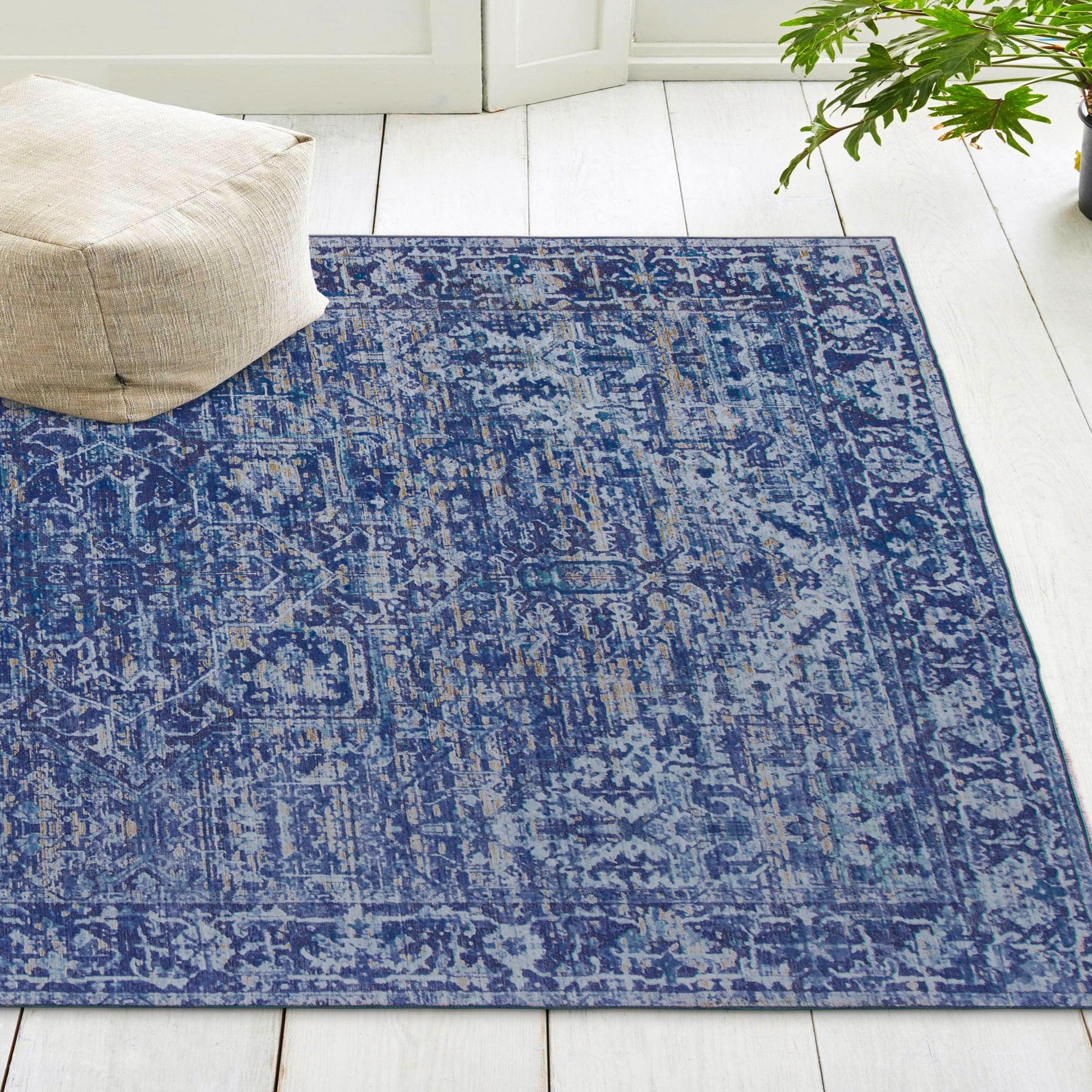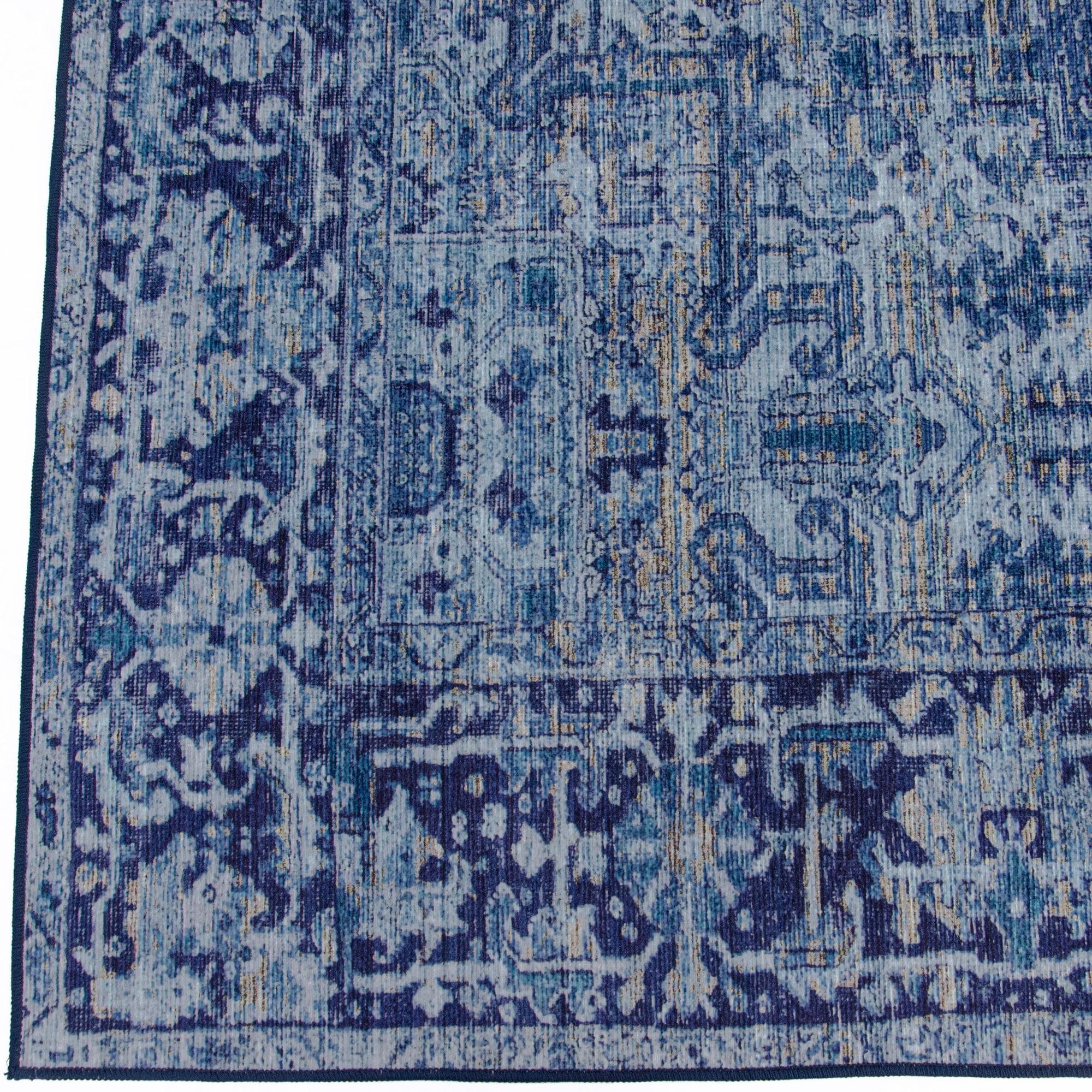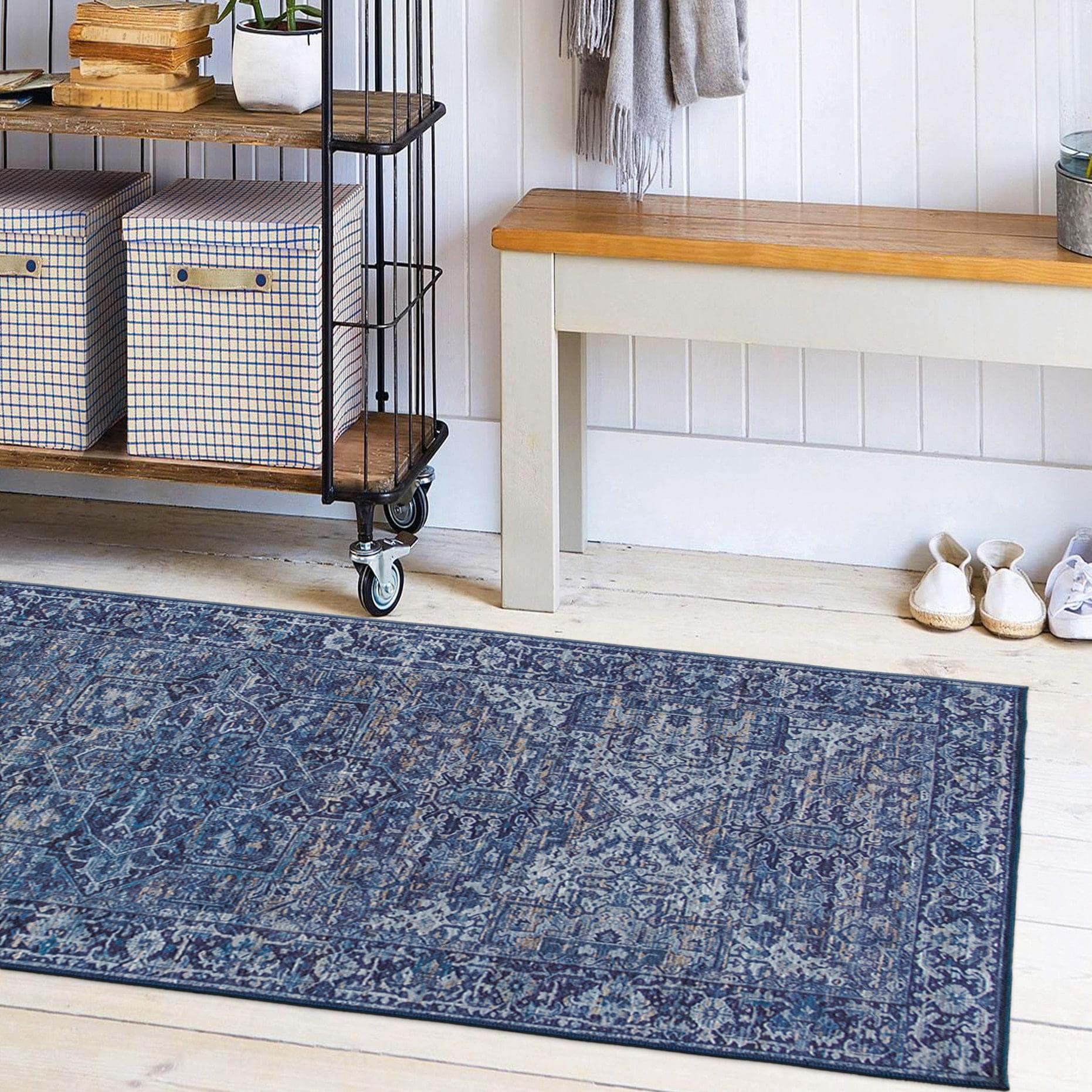 ReaLife Rugs Machine Washable Printed Vintage Distressed Traditional Blue Eco-friendly Recycled Fiber Area Runner Rug (2'6" x 8')