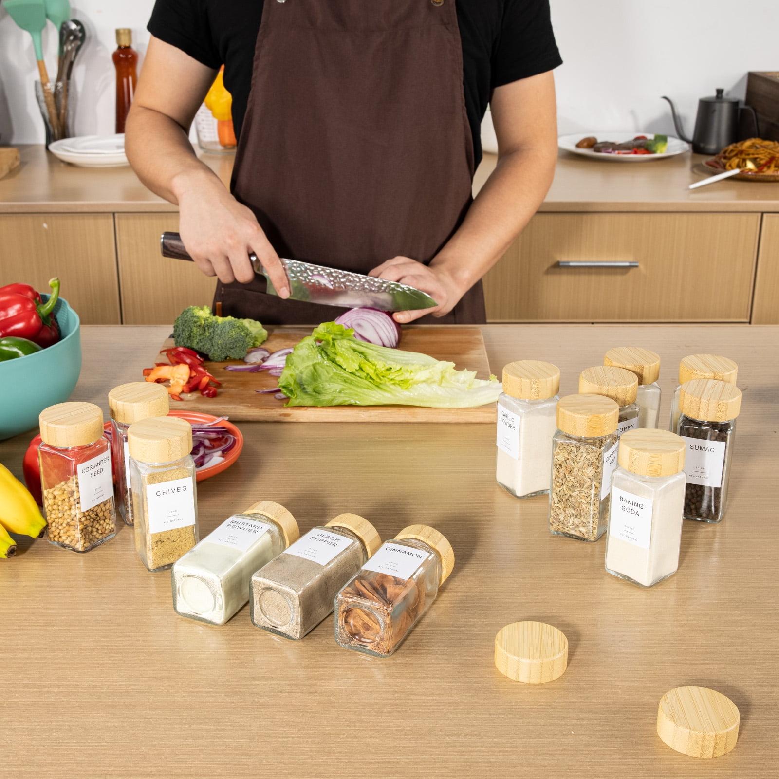FavorFlavor 24 Pcs Spice Jars with Label, 4.3OZ Thickened Glass Seasoning Jars with Bamboo Lids