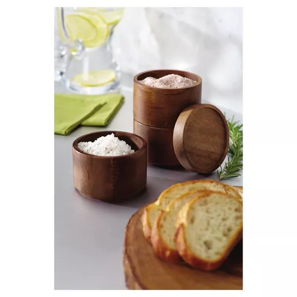 This Rachael Ray Tools and Gadgets Wooden 3-Tier Stacking Salt Box is perfect for grabbing salts or ground pepper in a pinch. Store table salt, gourmet salts, herbs and other favorite seasonings in this stylish stackable salt box for quick access while cooking. The salt box is distinctively crafted from beautiful acacia wood in a natural tone.