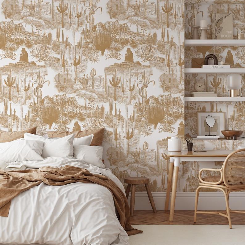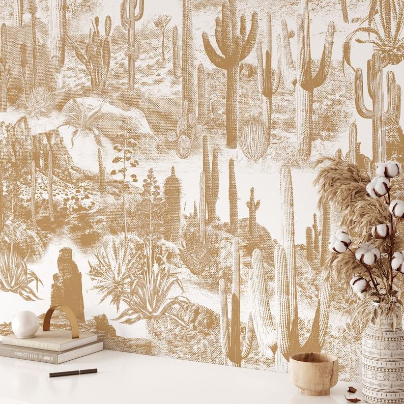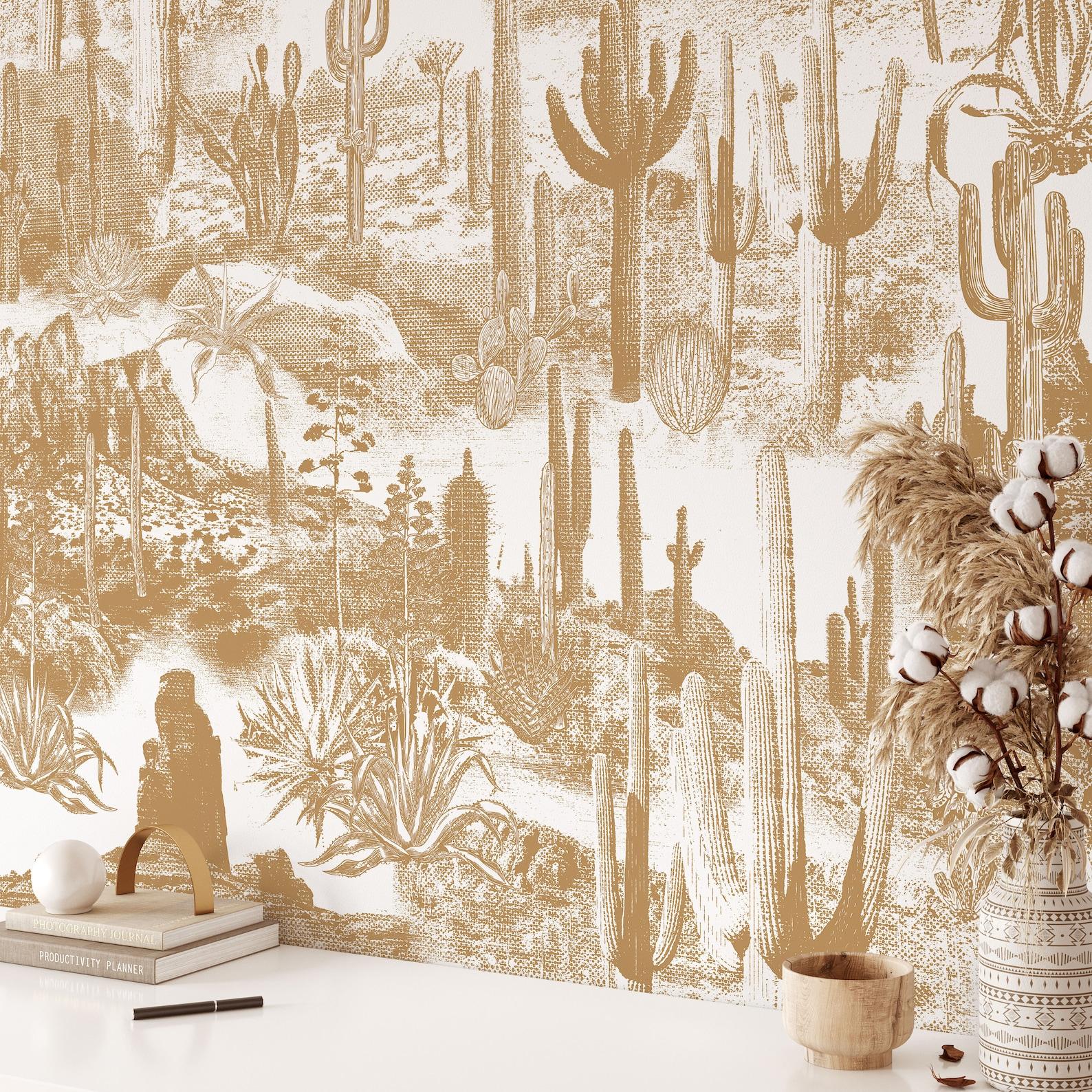 Desert Cactus Wallpaper, Vintage Monochrome Wall Decor, Beige and White Wall Art for Modern Minimalist Decor, WALLPAPERS4BEGINNERS