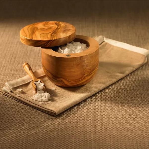 Elevate your culinary space with the exquisitely handcrafted Berard Salt Keeper, designed to cradle your premium cooking salts in unparalleled elegance. Crafted from the finest French olivewood, this bespoke storage box is not just a container, but a piece of art.