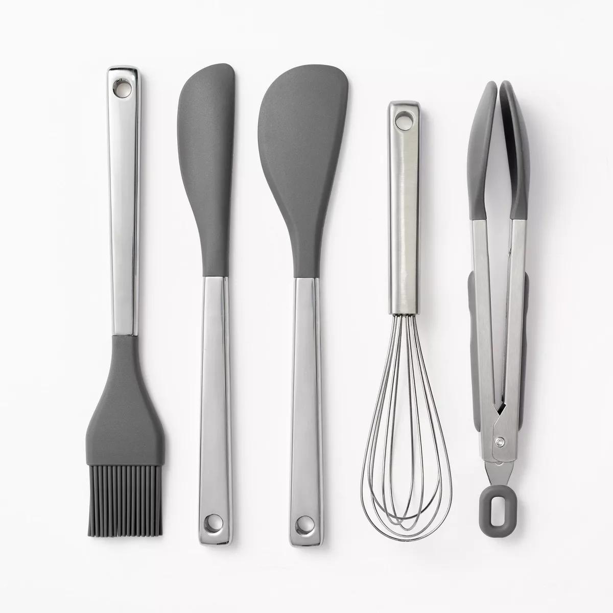 5pc Stainless Steel/Silicone 5pc Mini Kitchen Utensil Set Dark Gray - Figmint