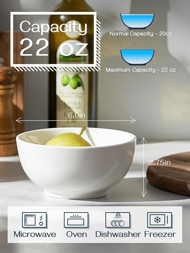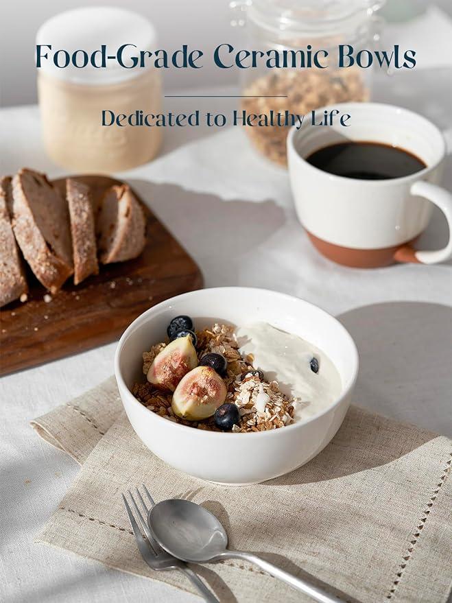 DOWAN 22 OZ White Ceramic Bowls Set of 4