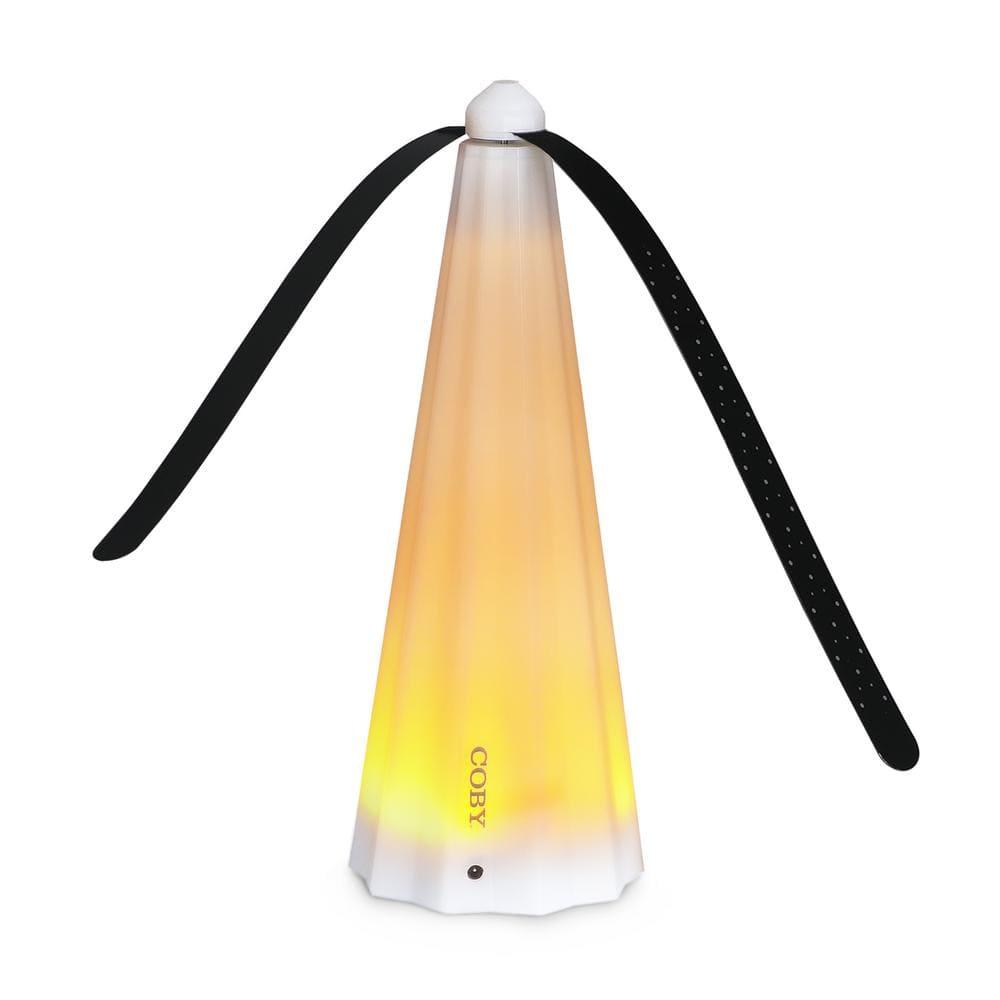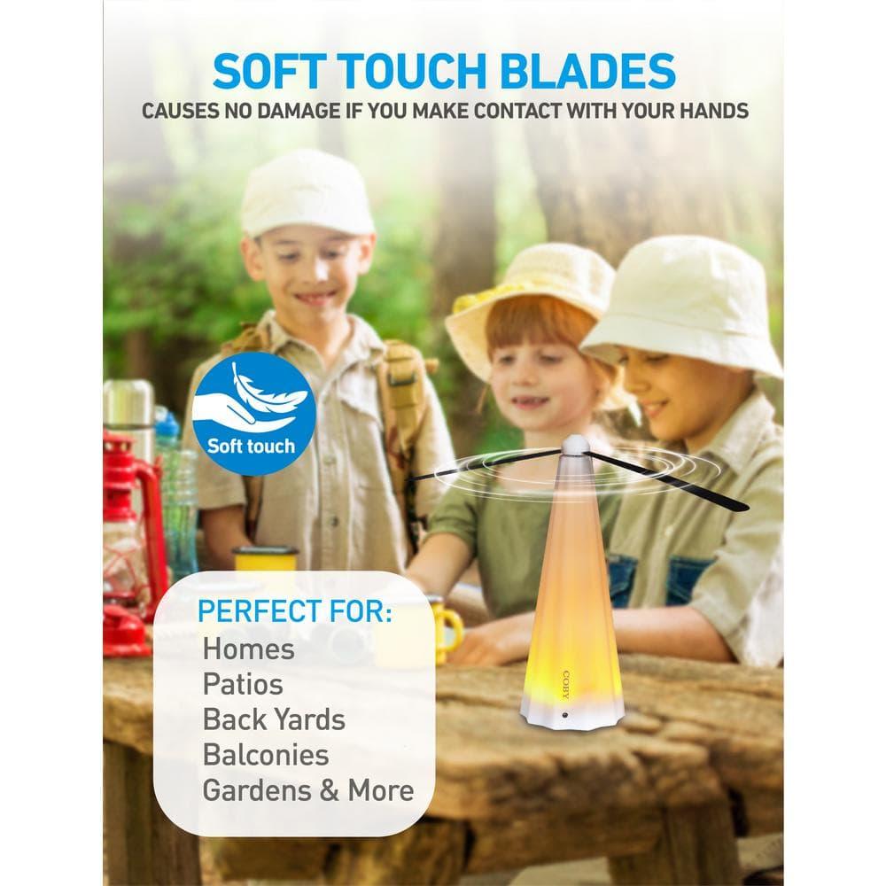 Keep the good times rolling without the bug bites thanks to this innovative Coby fly repellent fan. Ideal for indoor and outdoor use, simply hang on a tree branch, porch, or tent. Transport your new fly fan (13.66 in. x 3.66 in. x 9.44 in.) indoors or outdoors, powered by 2 AA batteries or a USB cable. An insect repellent orange LED light keeps the mosquitoes far away, as do the reflective dots featured on the ultra soft touch blades. Savor good times with friends and family while enjoying delicious food and beverages without the hassle of bugs thanks to this lightweight (0.40 lbs.) eco-friendly Coby fly repellent fan.