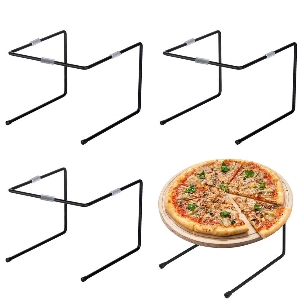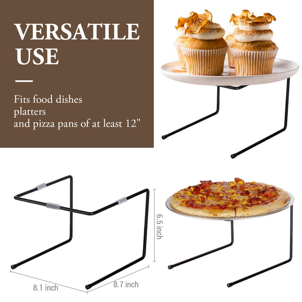 Helpful for serving pizza or displaying baked goods, these metal wire pizza stands make the most of the table and counter space at home or in restaurants or bakeries. The simple U-shape design has a distinctive and fun design with versatility to complement a variety of home or commercial settings. Also helpful for helping cakes cool quickly, these useful stands can be used for baking, entertaining, and serving all kinds of foods.