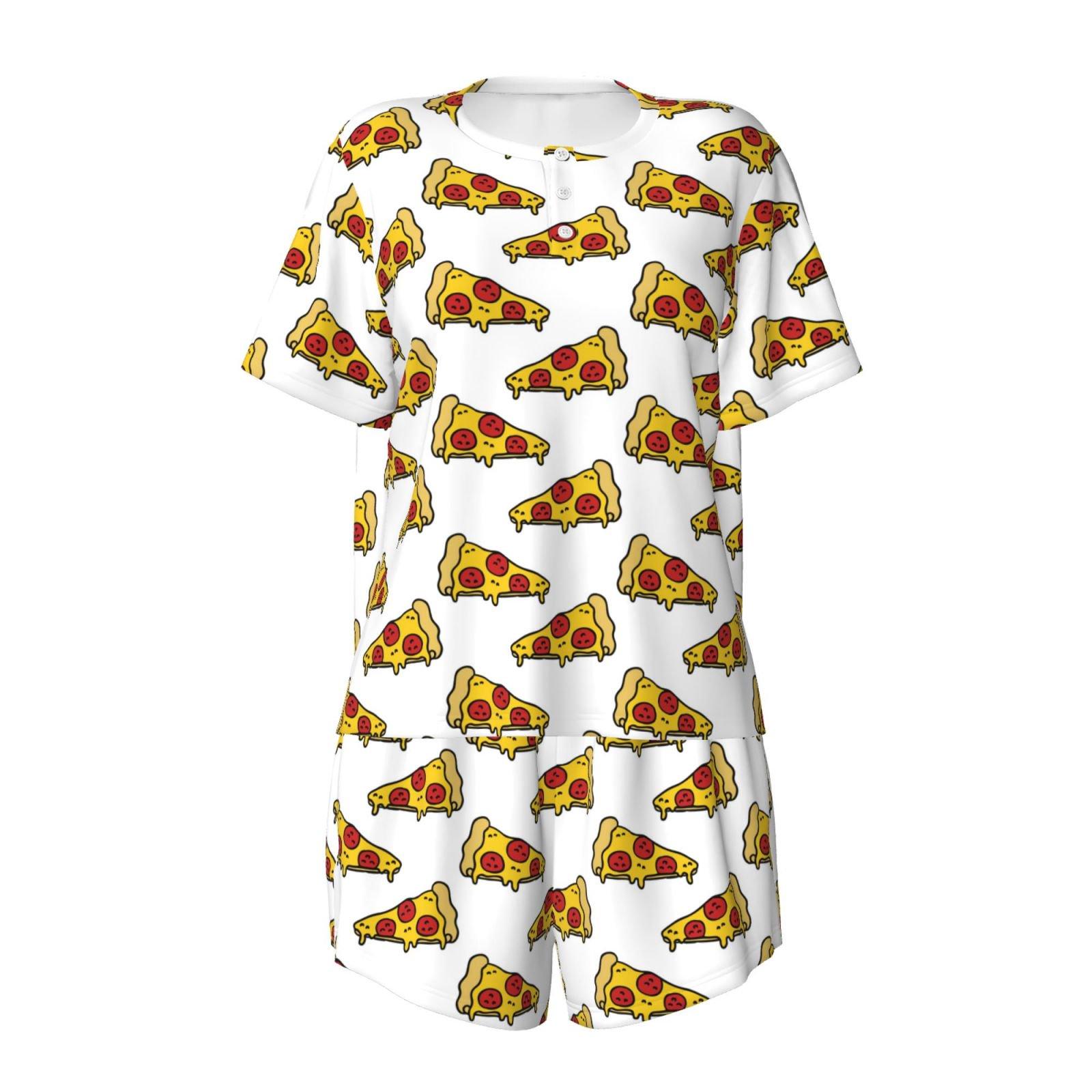 Adobk Pizza Print Women Pajamas Sets for Short-Sleeved,Shorts Comfy Pjs Casual Lounge Sets Sleepwear with Pockets(4X-Large )