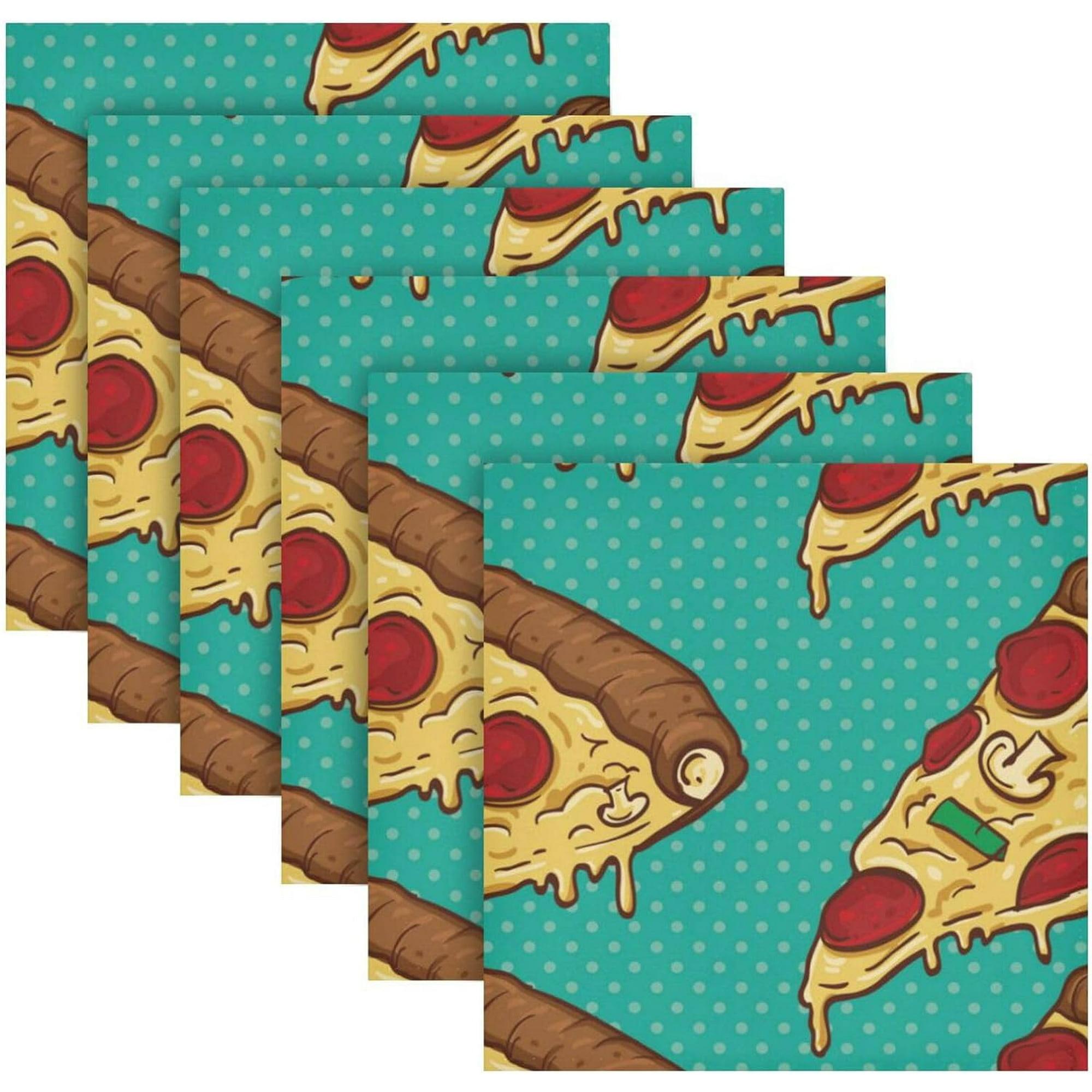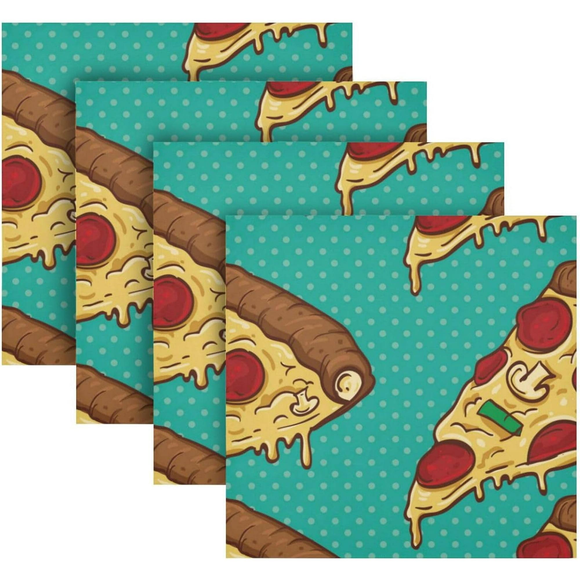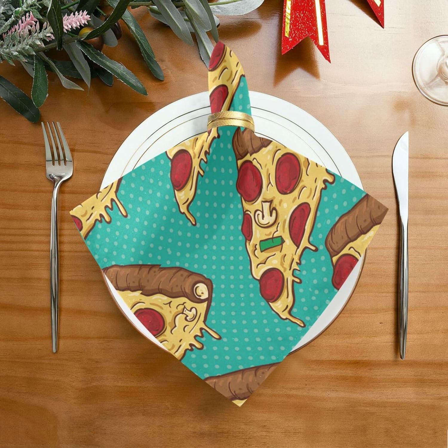 Coolnut Pizza Cloth Napkins Set of 4, Reusable Washable Polyester Dinner Table Napkins for Family, Weddings, Parties, Home Decor, 20 x 20 Inch Washcloth Gift