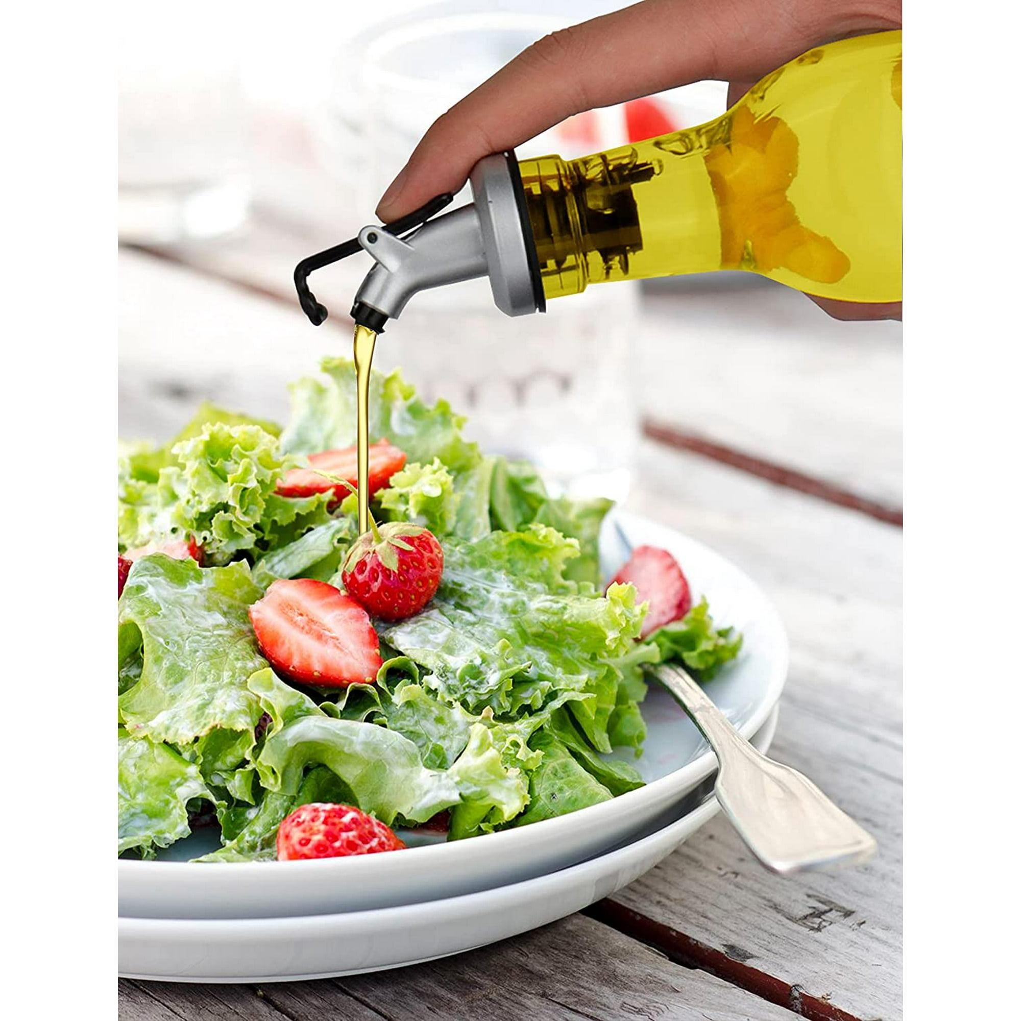 Single hand operationSlim bottle body makes you easy to handle our oil dispenser,add favor to your dish without being strenuous. Considerate lever design caps also make it easily open even when you use only one hand., Drop-free, easy control Unique curved nozzle design, makes this oil bottle friendly for kitchen newcomers. Liquid flows through the cured nozzle and drops slowly so that you can control the flow much easier.