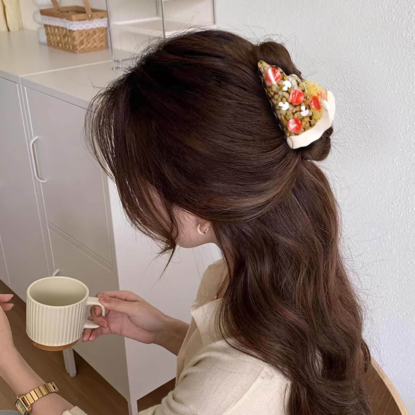 Women Girls Food Hair Claw Clips, 3.15" Cute Pizza Hair Clamps, Unique Hair Clips, Ponytail Hair Claws Gift for Birthday Shower Christmas Wedding Bridesmaid, Back to School Outfits, 1Pack