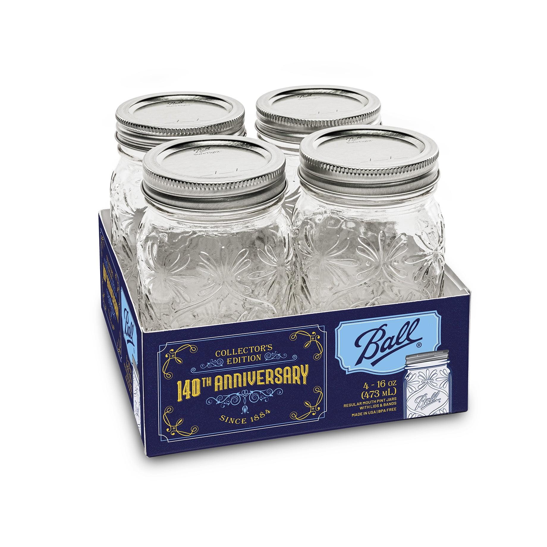 Ball 4pk Regular Mouth 16oz Pint 140th Anniversary Keepsake Jars