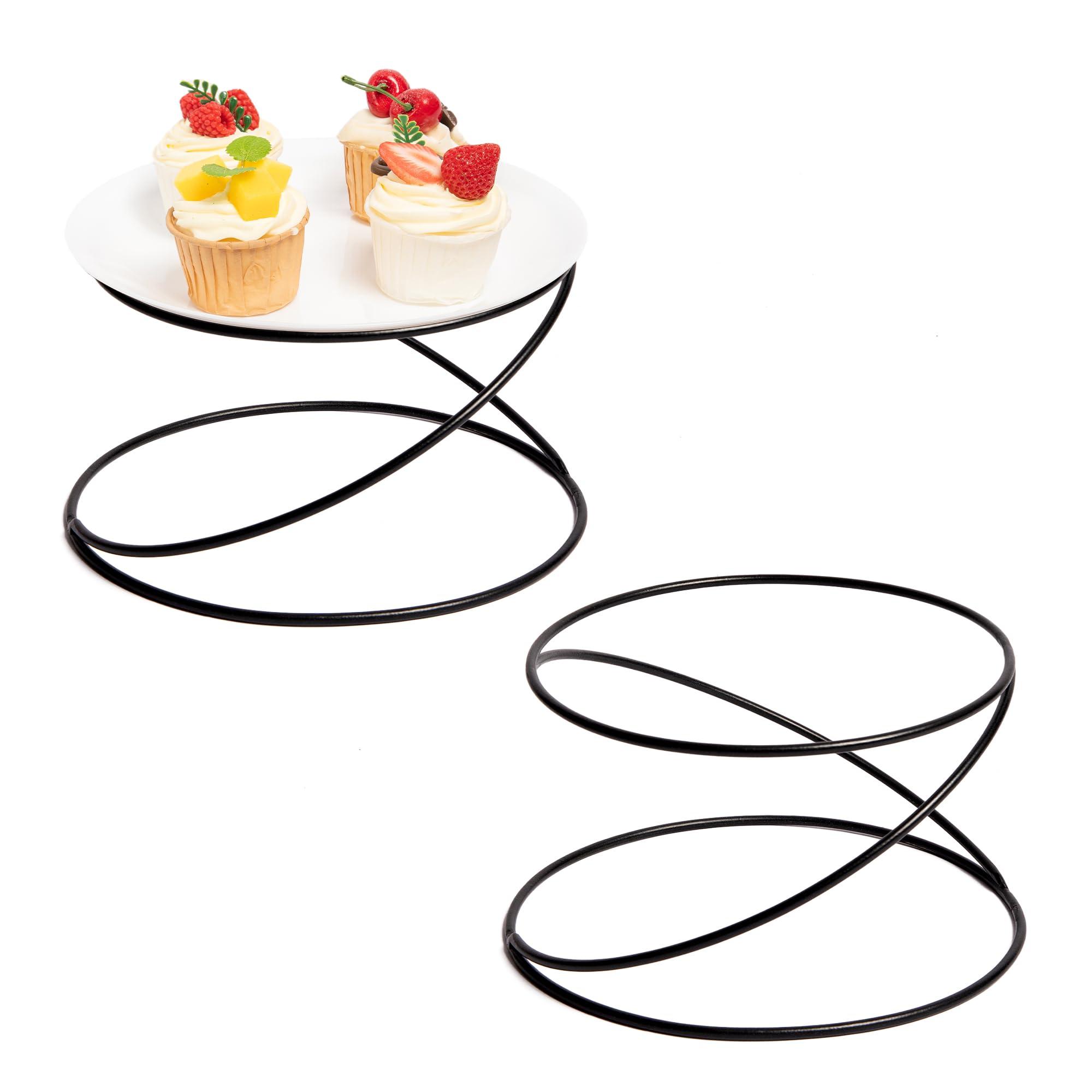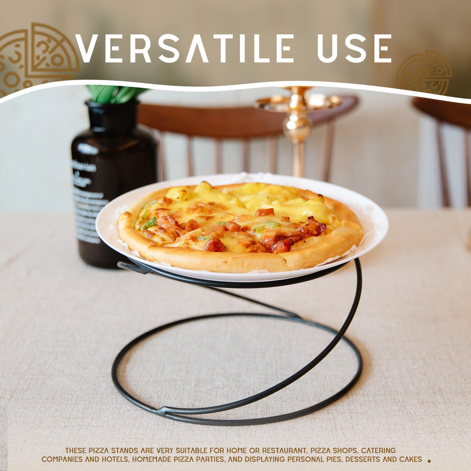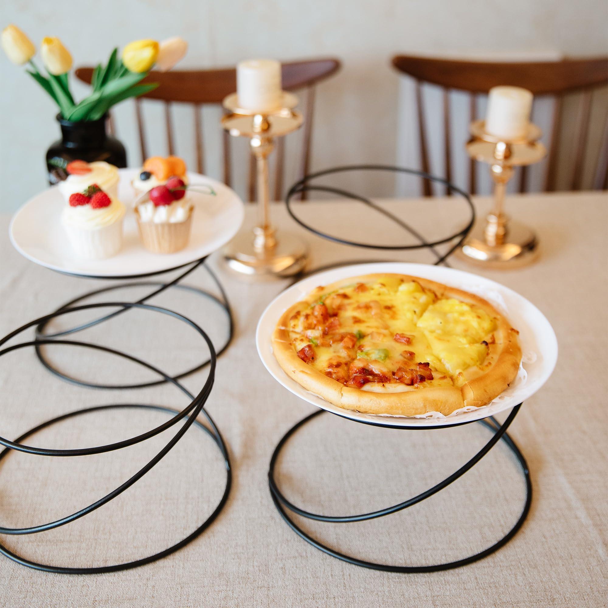 HPC DECOR Set of 4 Black Metal Wire Pizza Pan Riser Stands- Round Pizza Tray Riser Rack - Tabletop Display Racks for Food Platter Tray- Metal Display Stands for Home, Restaurant and Party