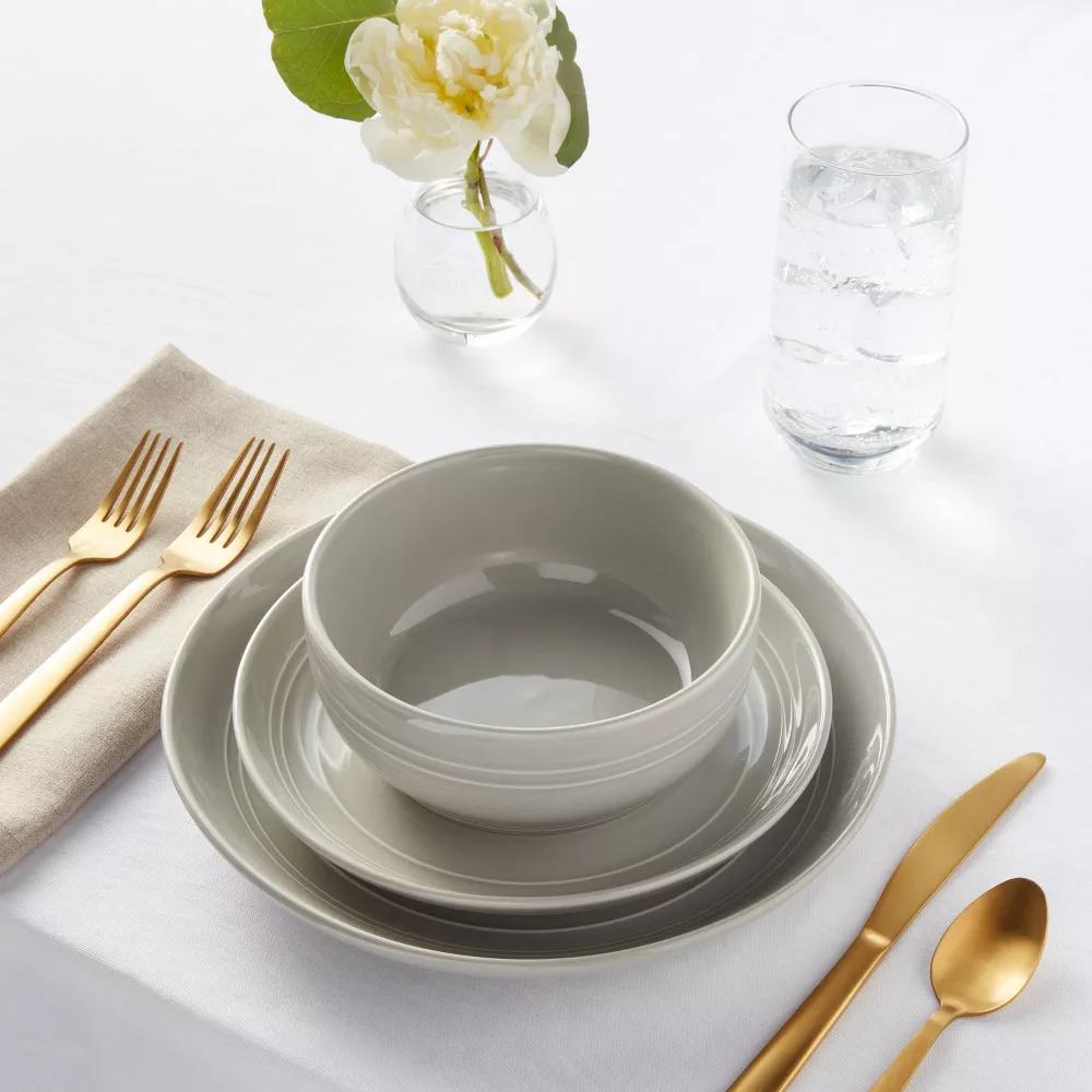 The 12-Piece Stoneware Westfield Dinnerware Set from Threshold™ makes the perfect choice to refresh your own dinnerware. This dinnerware set includes four bowls, four dinner plates and four salad plates, all in a round shape to help complete your table setting. Made with stoneware in a glossy finish, this white dinnerware set brings elegant and modern appeal to your dining room. Just add a white serving platter to create a coordinated look on the table for routine or occasional dining.