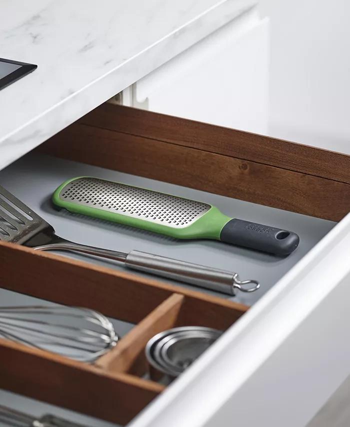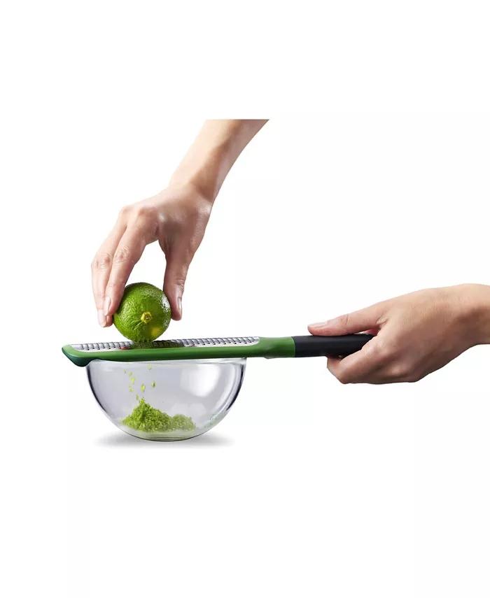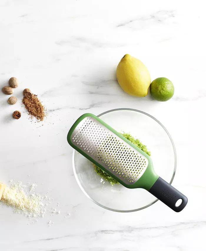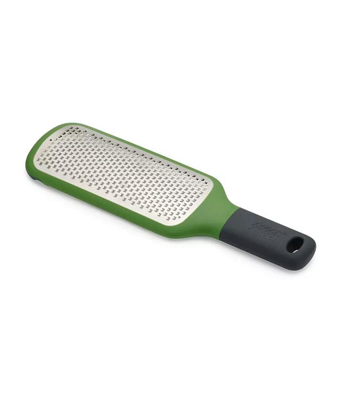 This handy paddle grater can be used in a variety of ways but it's particularly suited for grating into bowls. It features notches on the underside that hook over the bowl edge, providing excellent stability when grating. An easy-grip handle makes grating directly over food convenient and a non-slip tip provides extra stability if using a chopping board or worktop for support. Features a fine, stainless-steel blade that's ideal for hard cheese like parmesan or zesting citrus fruit. Dishwasher safe.