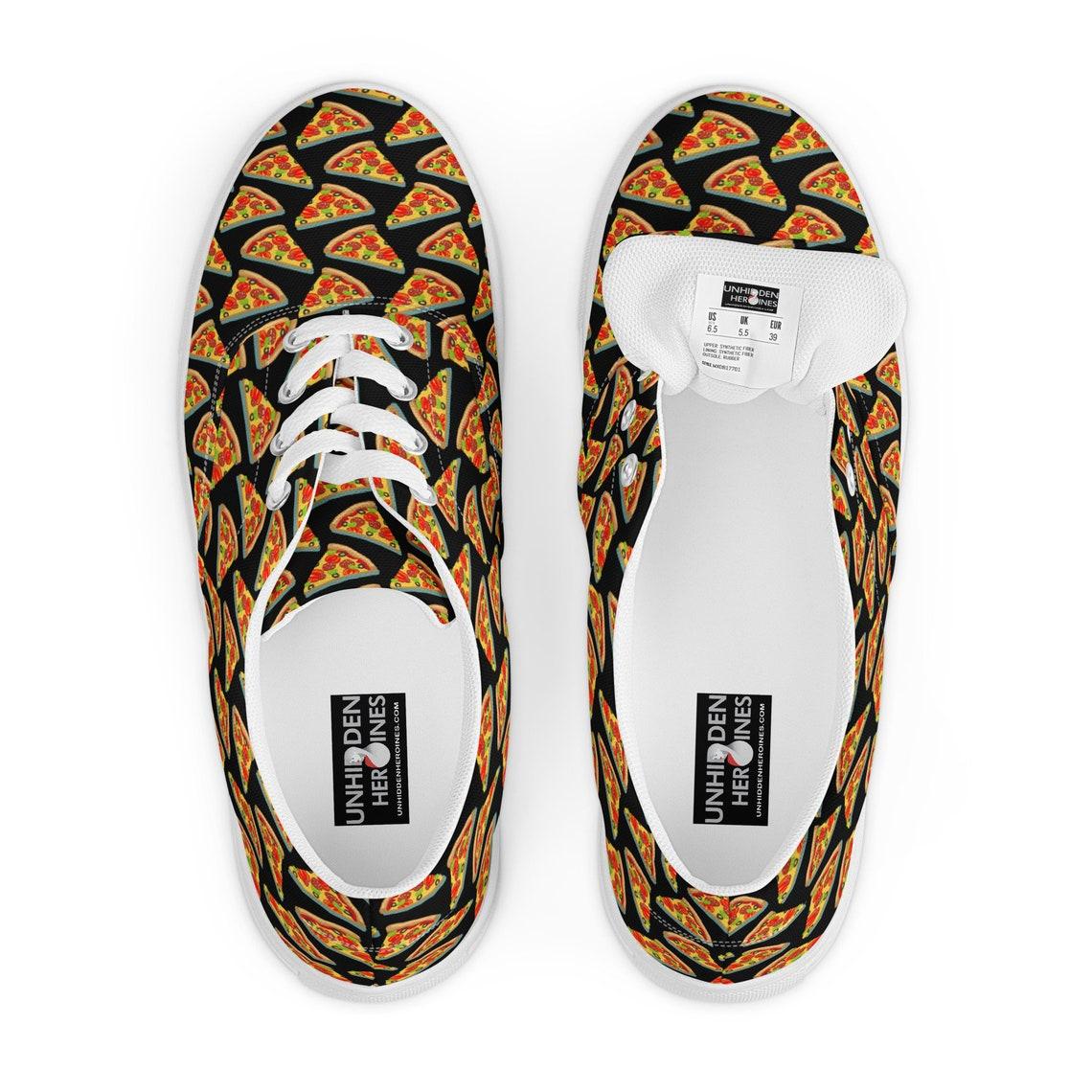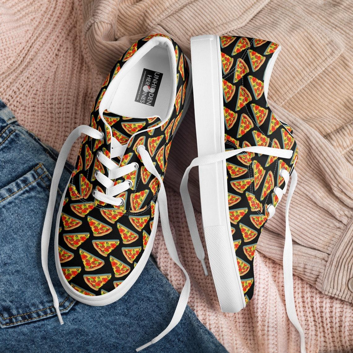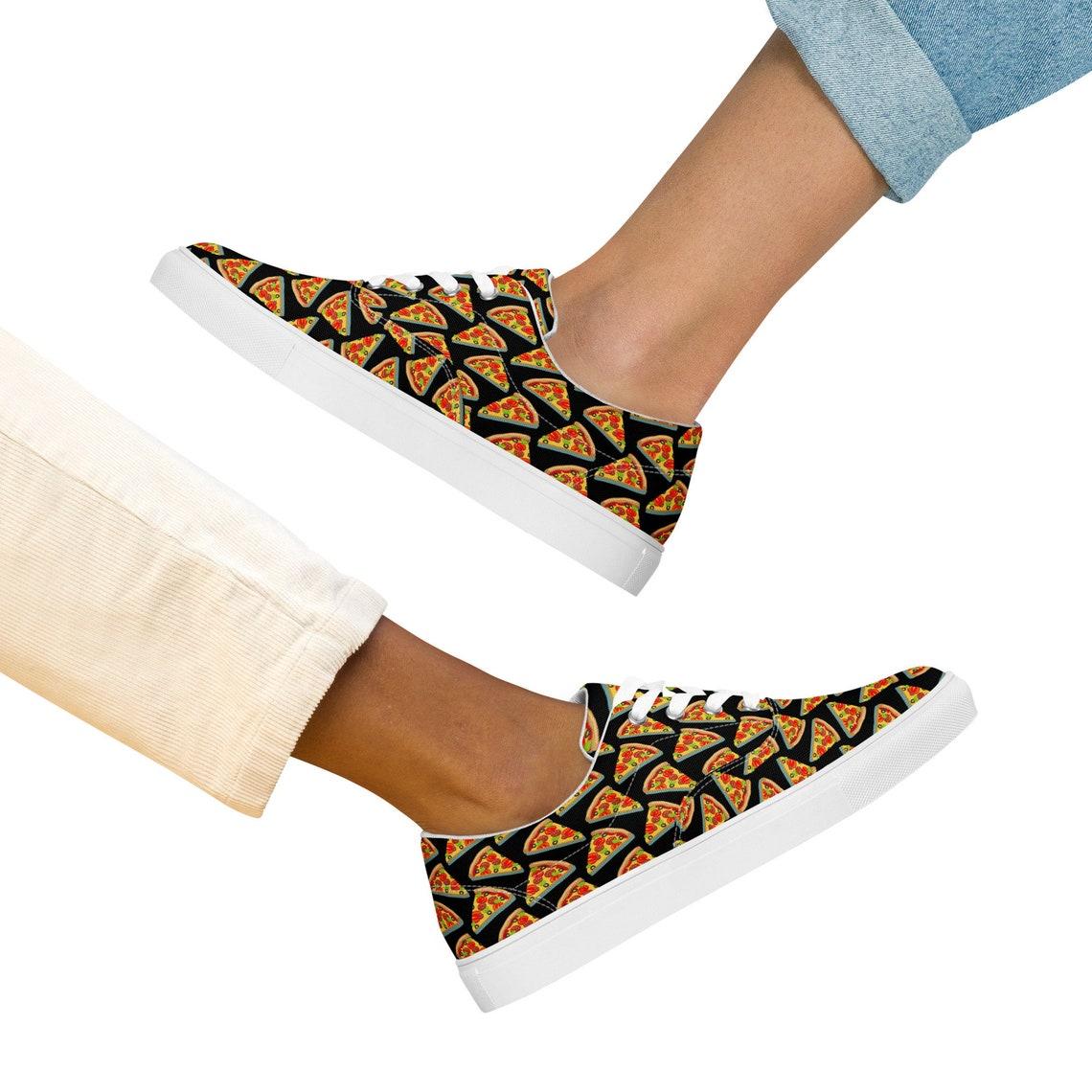 Pizza Slices Canvas Shoes Women, Pizza Lover Gift for Her, Comfy Lace-Up Summer Beach Shoes, Foodie Gifts, All Over Print Designer Shoes