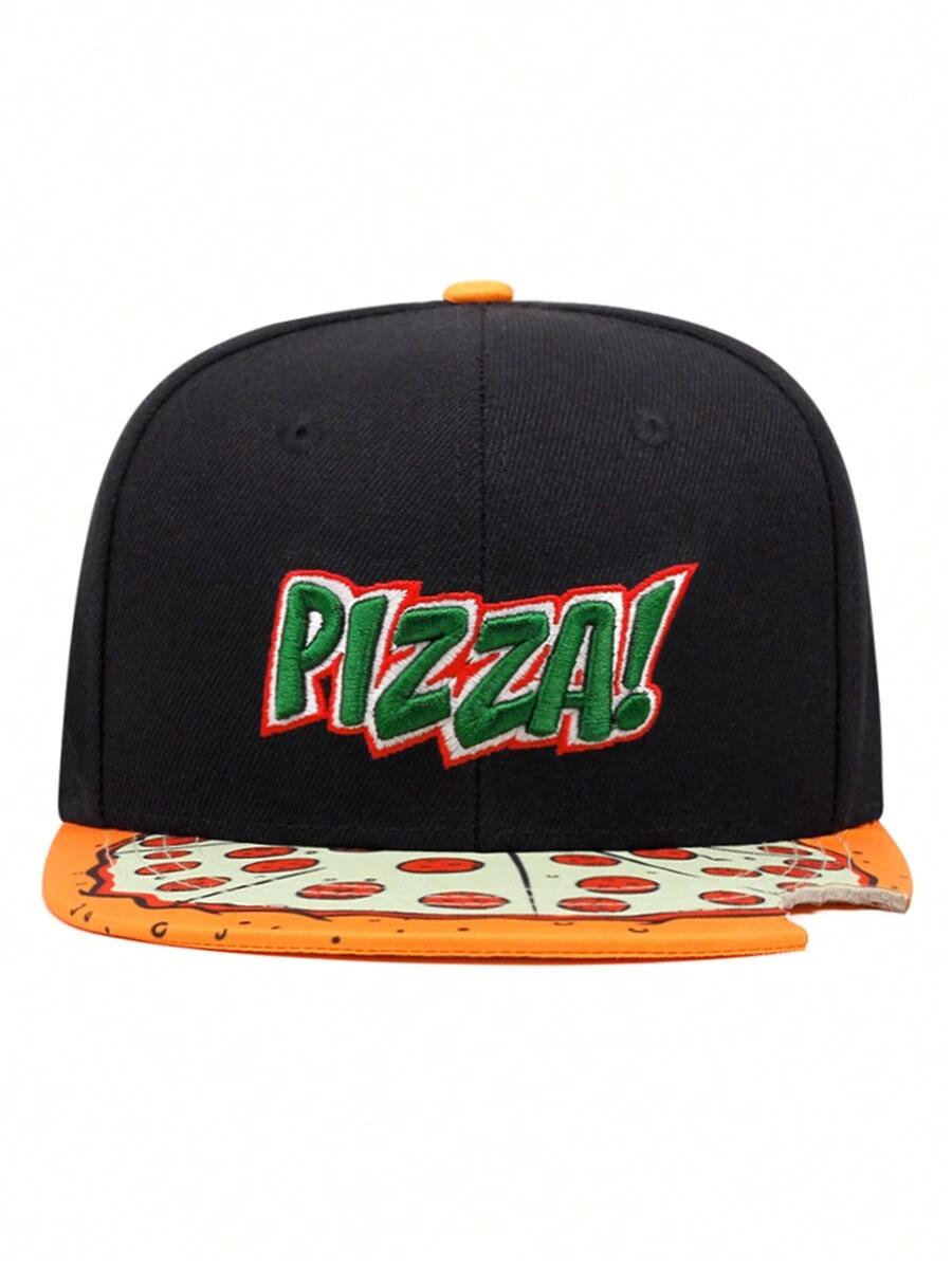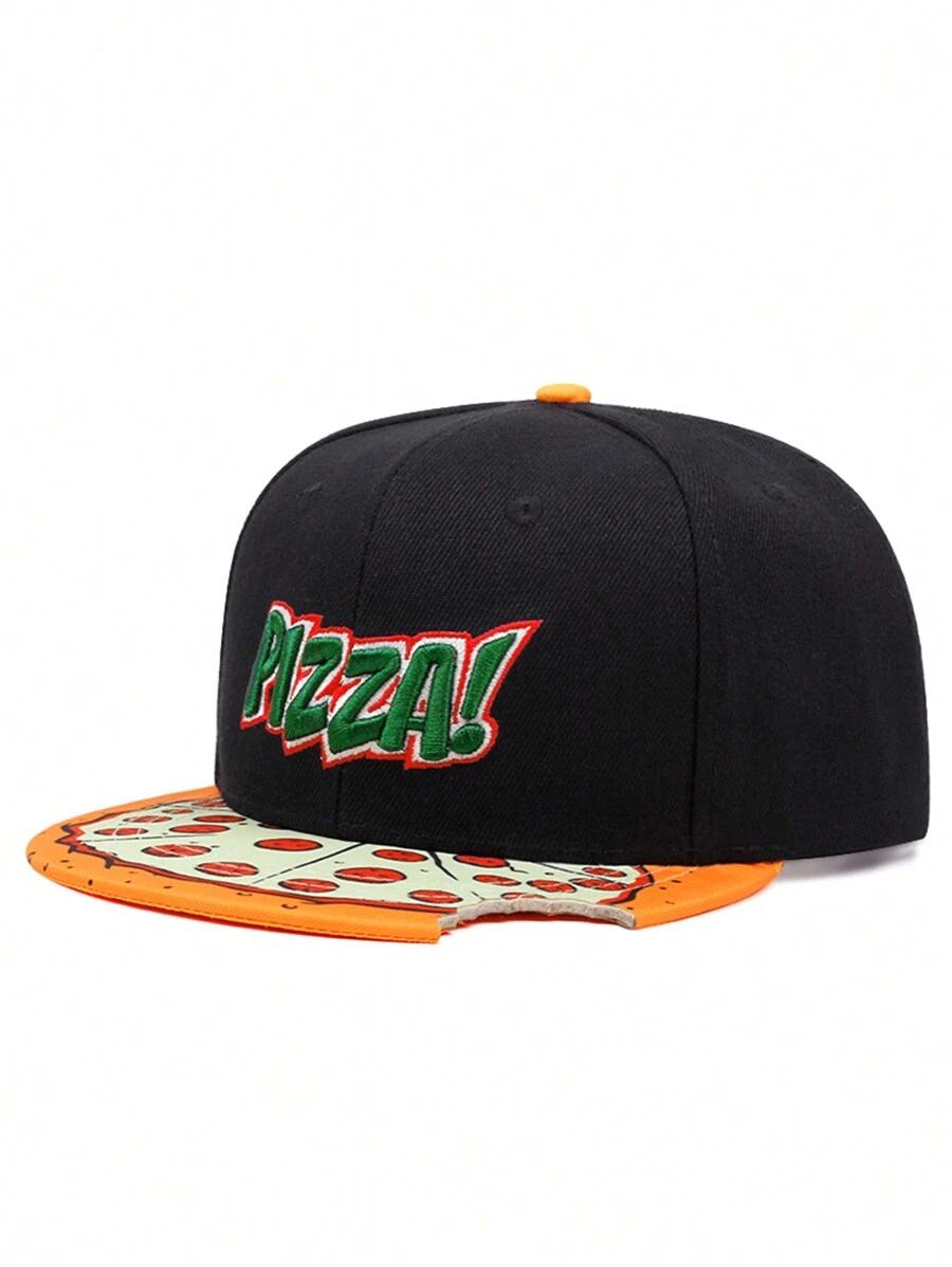 1pc Men's Fashion Able PIZZA Embroidery Hip Hop Baseball Cap With Letter Embroidery, Adjustable, For Outdoor Casual Wear, Spring/Autumn, Traveling Or Beach Vacation
