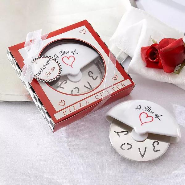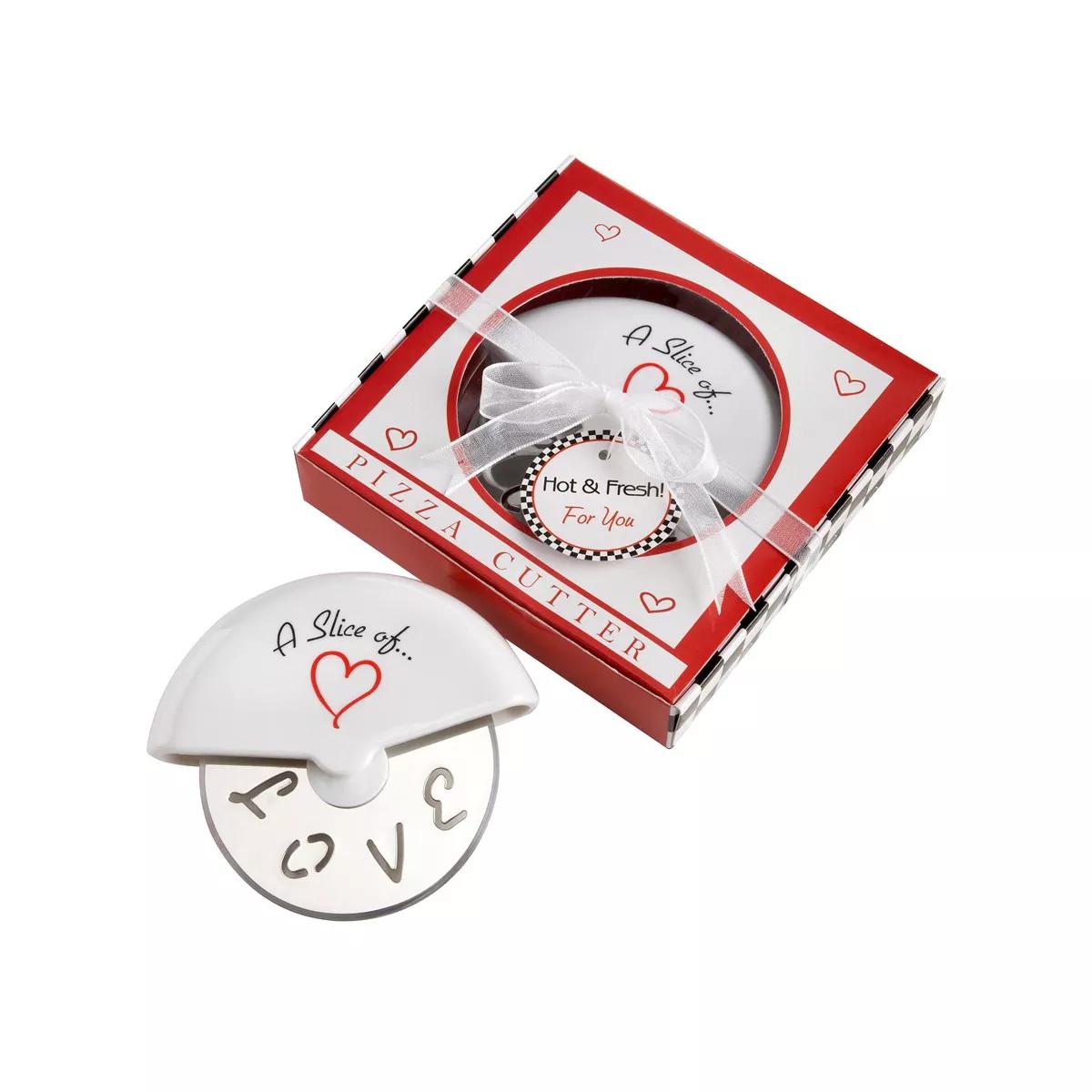 No matter how you slice it, there's simply no topping Kate Aspen when it comes to creative wedding favors! Place "A Slice of Love" Pizza Cutter next to each table setting, and when your guests go home, they'll take a "pizza" your heart with them__in a deliciously designed pizza box!