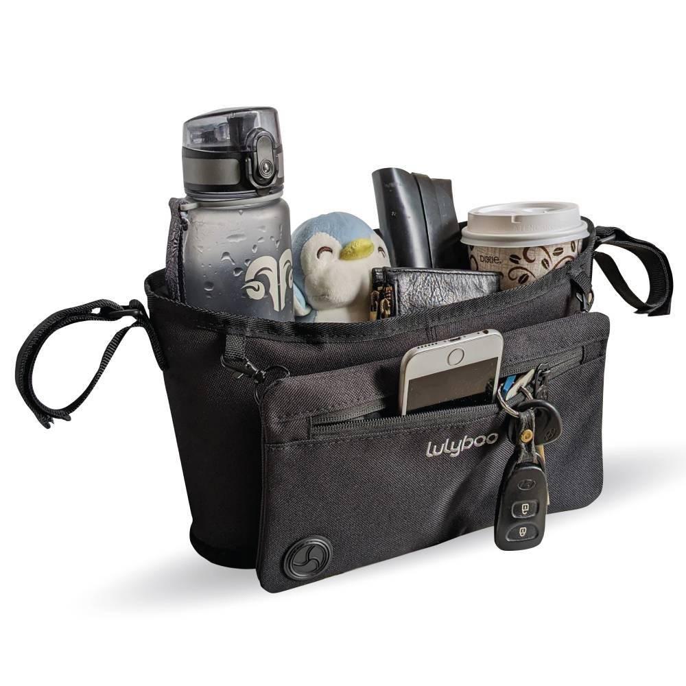 At Lulyboo, functionality comes first. We believe that life is an adventure, which is why we create stylish and smart products that help you make every day a celebration. Our products wrap babies in love while offering you comfort and convenience for an active, on-the-go lifestyle. Elevate your stroller's convenience with Lulyboo's insulated stroller organizer! Designed to expand and securely hold bottles and coffee cups, it grants effortless access to all your essentials. Crafted to fit most stroller bars and handles, our chic and practical stroller caddy features a detachable clip-on pouch for your phone, keys, and wallet, ensuring your essentials are always within reach. With our stroller organizer, keep all your necessary items close while you are on the move!