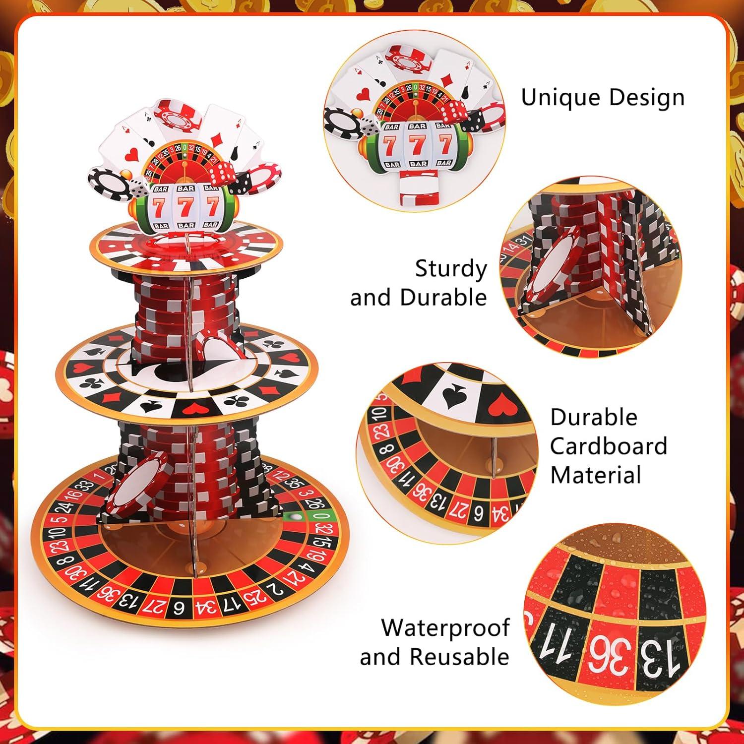 3 Tier Cupcake Stand: Holds up to 24 cupcakes, depending on the size of the cupcake, and stands upright to create a visual grip and organized food presentation for the dessert table, making it an eye-catching centerpiece for birthdays, gaming events, or casino-themed parties. Disclosure: We are a participant in the Amazon Services LLC Associates Program, an affiliate advertising program designed to provide a means for us to earn fees by linking to Amazon.com and Affiliate sites.