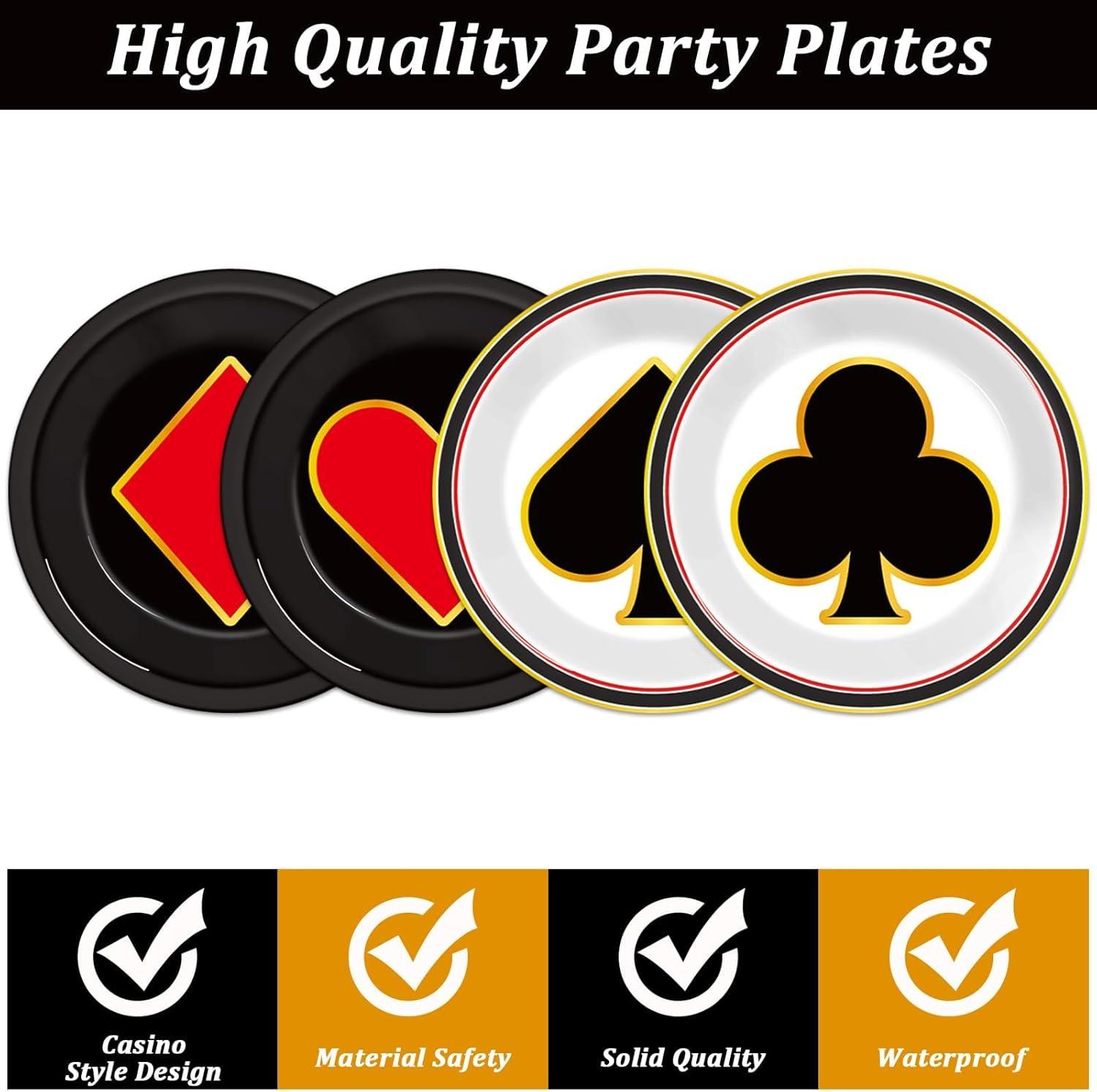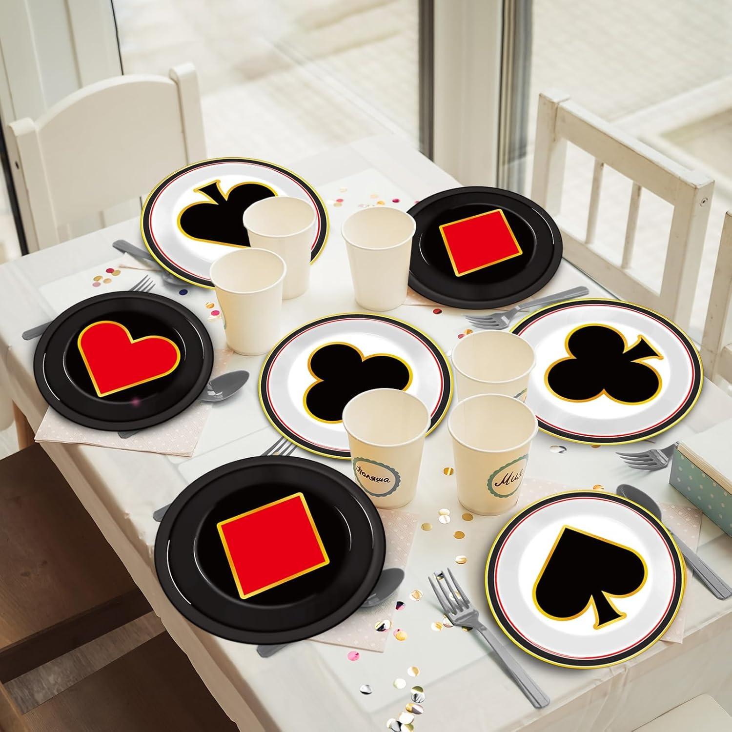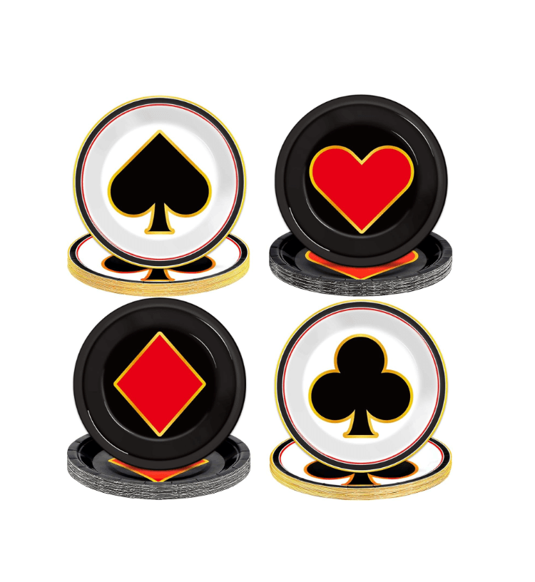 This casino party supplies includes 48 paper plates (7")(18x18cm).The casino nigh party tableware can serve for 48 guests and decorating with it will make your party more enjoyable. Disclosure: We are a participant in the Amazon Services LLC Associates Program, an affiliate advertising program designed to provide a means for us to earn fees by linking to Amazon.com and Affiliate sites.