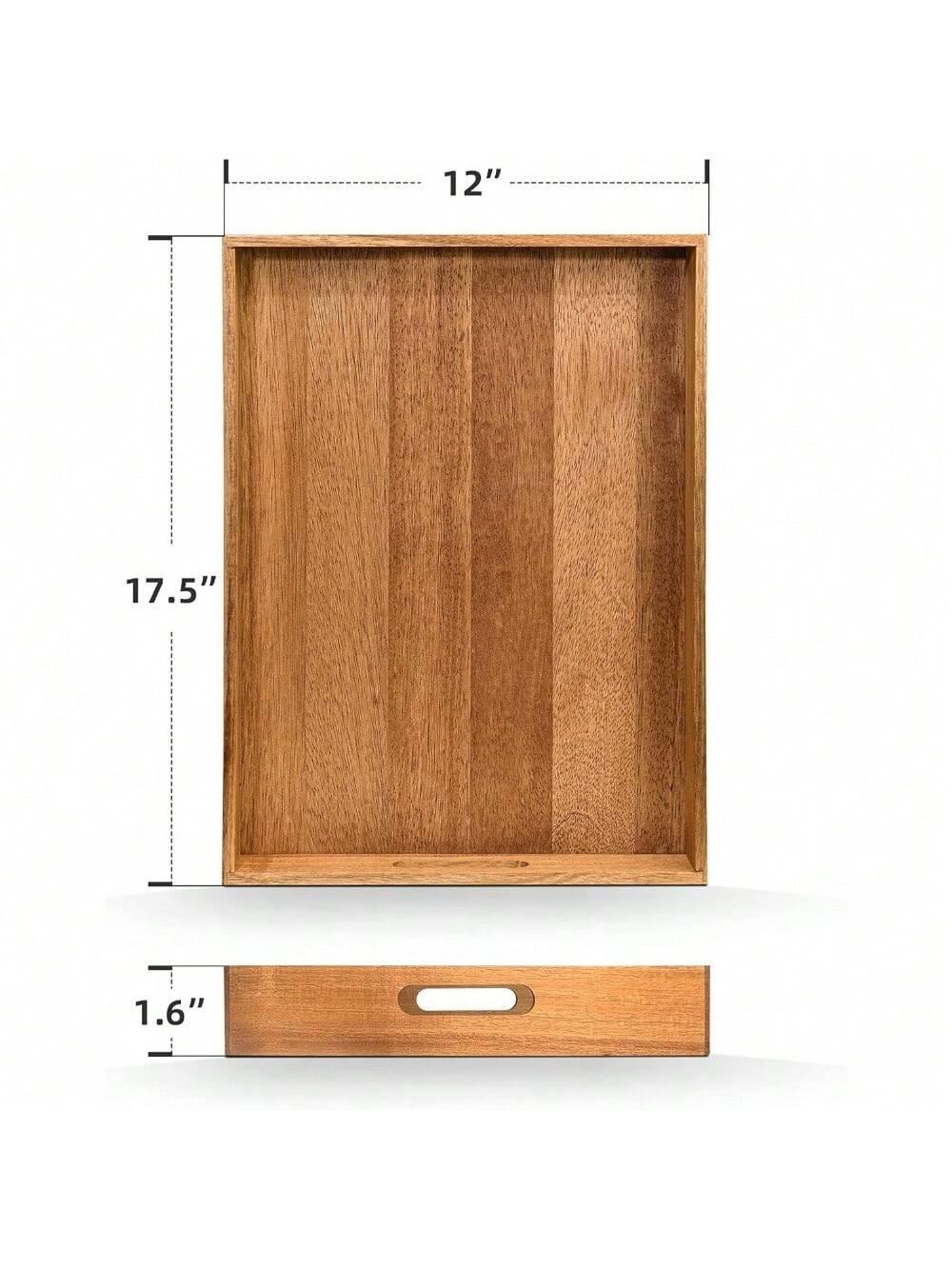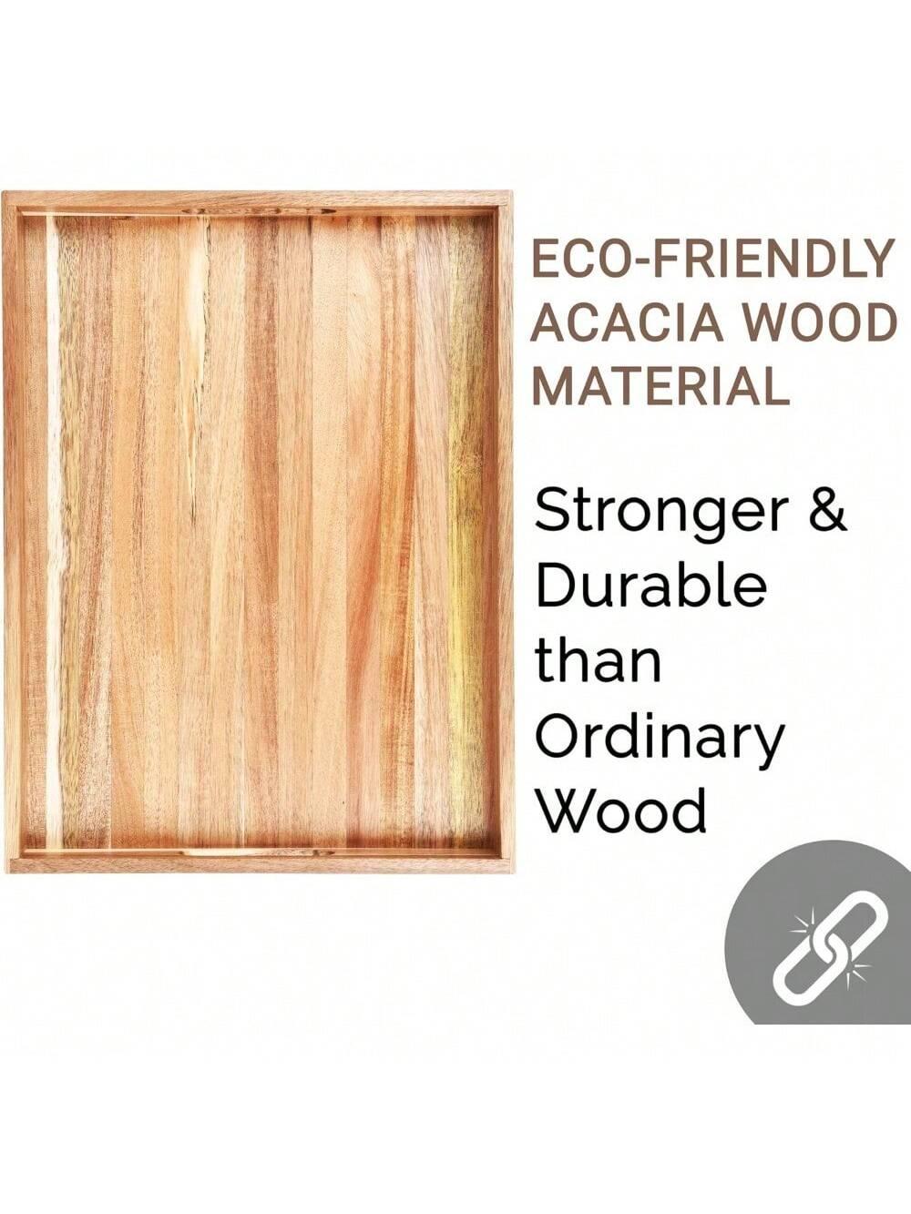 Serve With Style: Serve delicious food on dining tables, bring snacks on a coffee table, relish a lazy breakfast on a Sunday morning or unwind after a hard day at work in the bathtub, acacia woodserving tray has many uses.Acacia Wood Construction: Crafted from premium quality and durable acacia wood, our kitchen serving tray is stronger, sturdier and suitable for everyday heavy-duty use in the kitchen and commercial environments. Probably the last serving tray you will ever buy!Ergonomic GHandles: The sleek and low profile side handles allow for easy carrying of food from the kitchen to living room, patio, bedroom or bathroom. Even if the rustic serving tray is jam-packed with items, you will have a firm grip; never worry about accidents.Durable Yet Lightweight: Measuring 17.5 inches x 12 inches, this elegant serving tray has the perfect size to fit your favorite foods and yet is lightweight enough for easy carrying when the bed serving tray is full. It has a high wall surrounding the tray, which keeps all the things in place.Multifunctional Serving Tray: This patio serving tray is ifor serving breakfast, lunch, dinner, snacks and any meal. Apart from everyday use, this serving tray can also be used during family activities, parties and get to gathers. It is equally useful in commercial setups and restaurants.