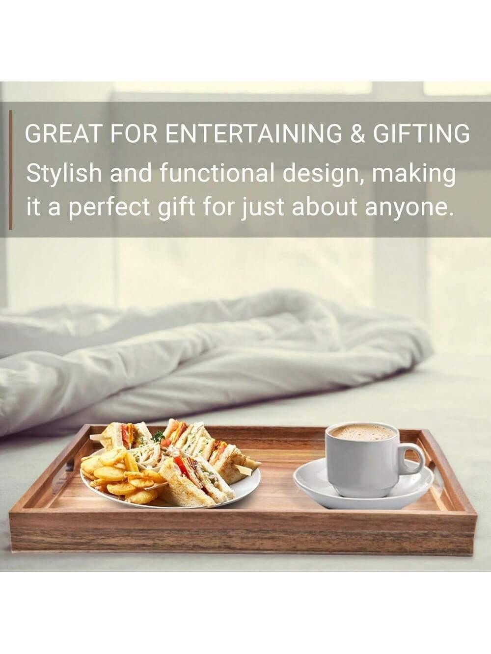 Acacia Wood Serving Tray With Handles (17 Inches) â Decorative Serving Trays Platter For Breakfast In Bed, Lunch, Dinner, Appetizers, Patio, Ottoman