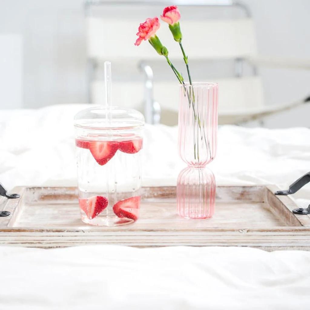 Keep your favorite beverage handy & stylish with this reusable glass tumbler cup with a lid & straw. This glass can tumbler cup is a must-have for any coffee lover. Whether you're getting your caffeine fix at the office or sipping an iced beverage on the deck, this cute lightweight glass can tumbler will help keep you refreshed all day long. Our cute glass can cup with straw & lid is perfect to enjoy your favorite cold drink on the go. The borosilicate glass tumbler will look great on your countertop & make for a perfect birthday gift for yourself, a friend, or a family member. These straws are the perfect birthday gift, housewarming gift, gifts for your bridal party, & more! Specs: holds up to 15oz liquid comes with lid, glass straw, silicone band borosilicate glass 4.7inx3.2 Care: dishwasher safe ALL IMAGES ©KESSELLATE, 2024 Dome Lid Glass Tumbler, Cold Brew Coffee Cup, Milkshake Tumbler With Straw & Lid, Bubble Tea Smo