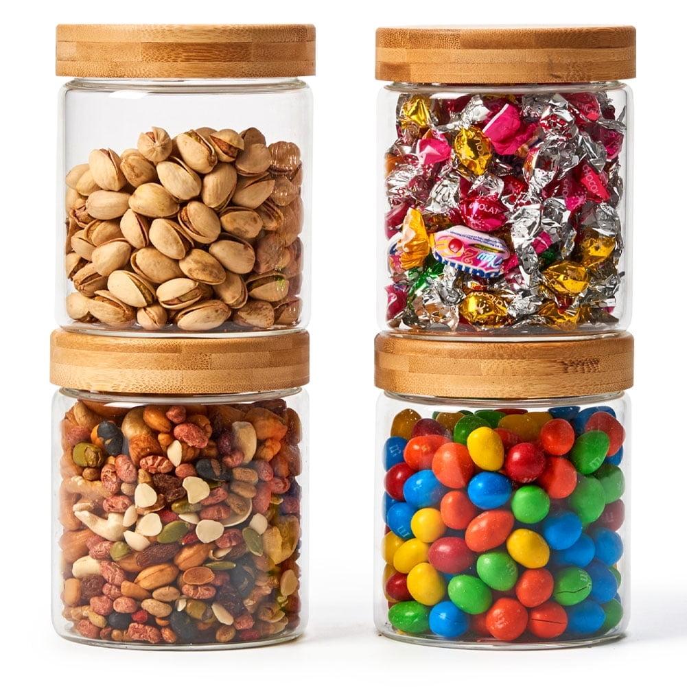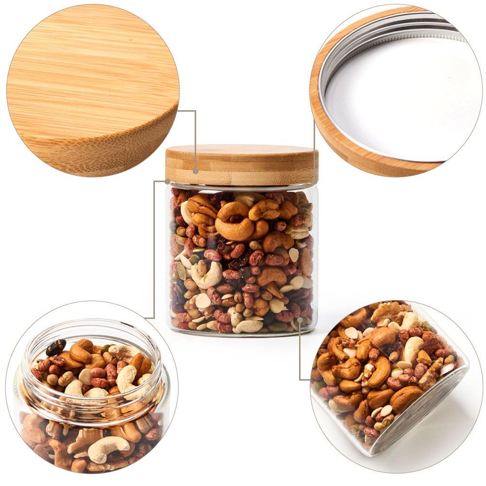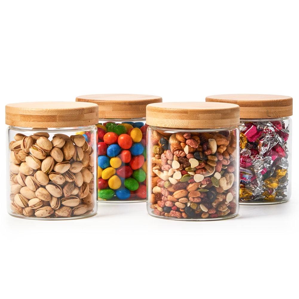 EZOWare 4 Piece Glass Airtight Jars Storage Canister Container Set with Bamboo Lid (20 FL OZ)