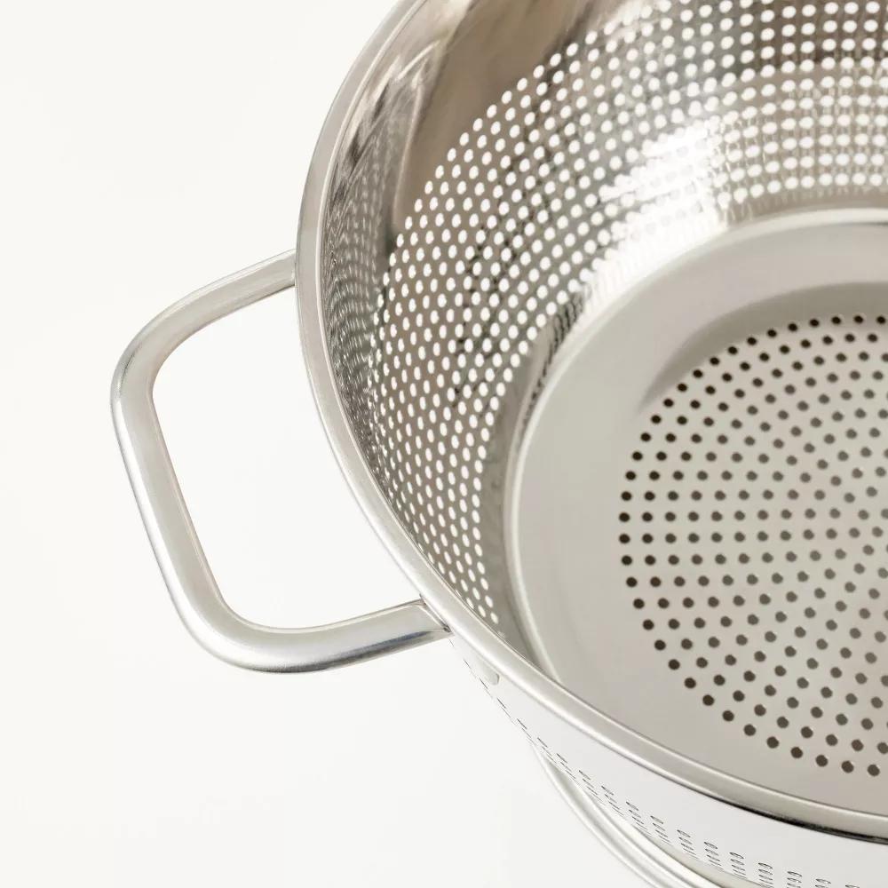 From rinsing fruits and veggies to draining your pasta, this 3-Quart Stainless Steel Colander from Figmint™ makes for comfortable, convenient use in your kitchen. The stainless steel construction is built to last and easy to maintain, with generously arranged holes that facilitate easy draining.